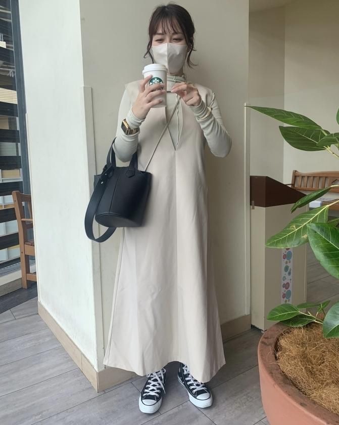 配色のカラーメロウが1枚で目を惹く一着!高すぎないモックネックがモードな印象に◎