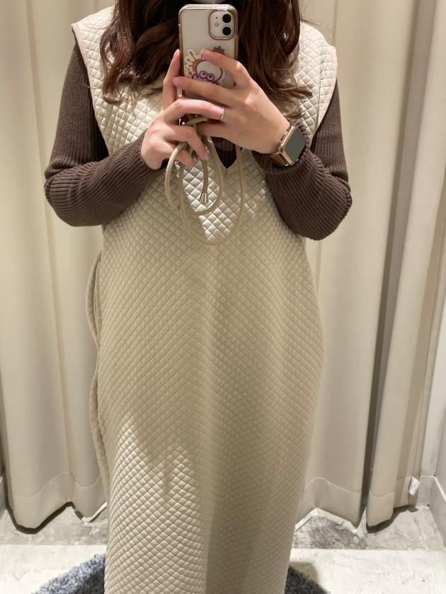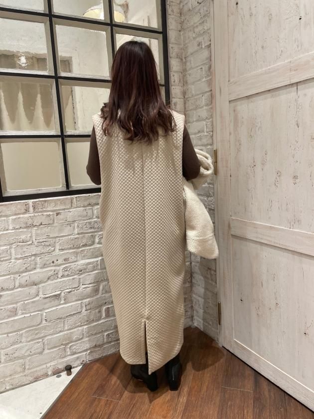 ミリタリーな印象が強いキルティングですが、クラシカルな雰囲気でも着られるよう、シルエットにこだわったワンピースに仕上げました。