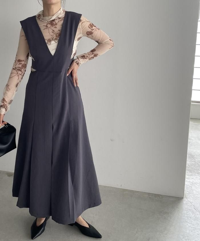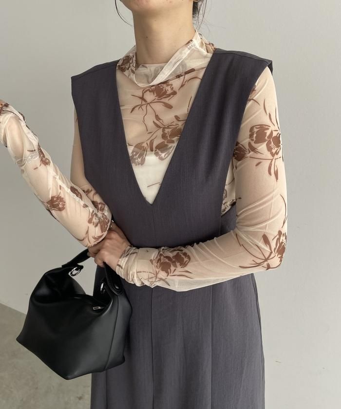 首元はすっきりとした印象のボトルネックを採用しレイヤードアイテムにアクセントをプラスしてくれます◎