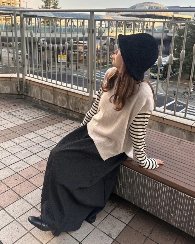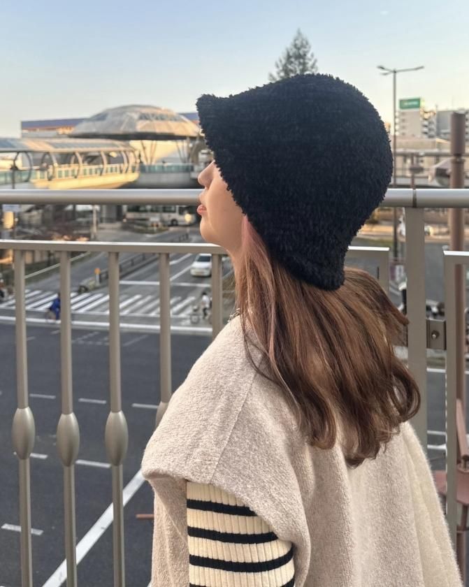 表情のある特徴的な素材の糸を使用したバケット型ハット。