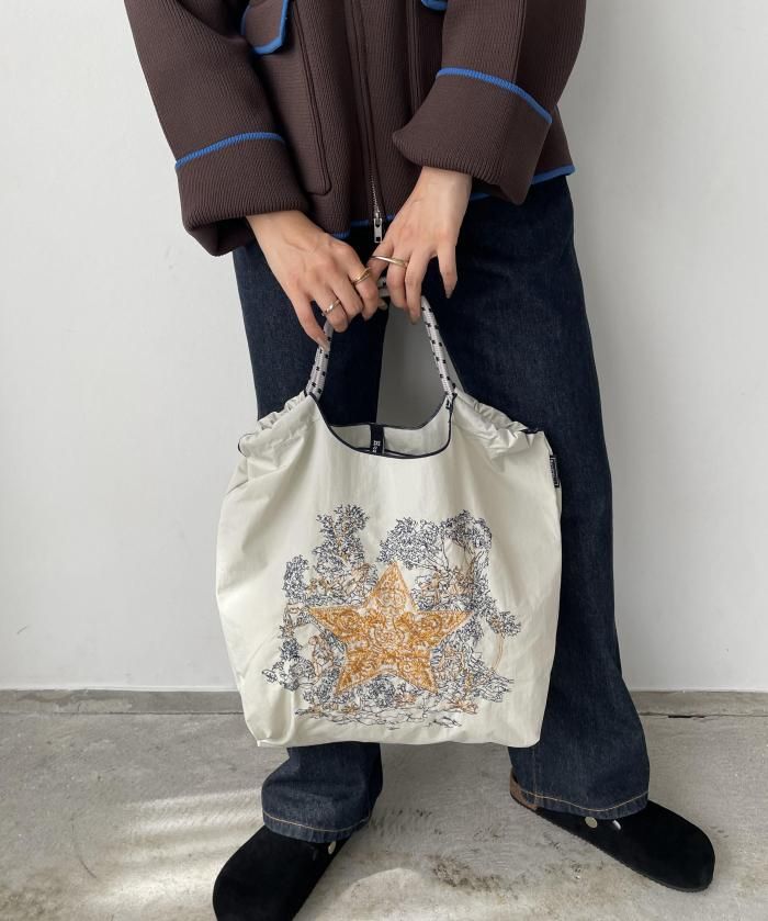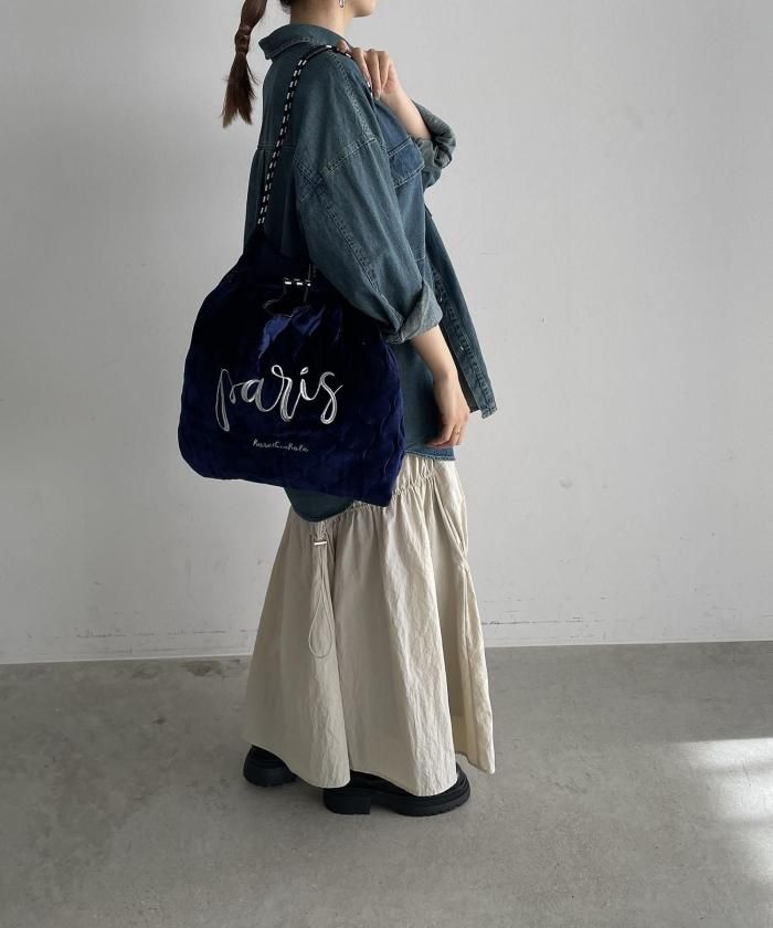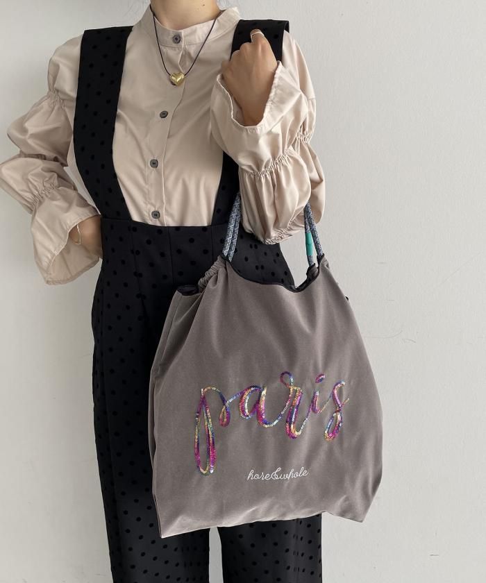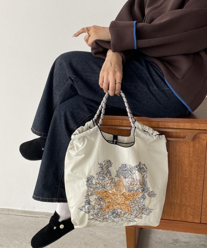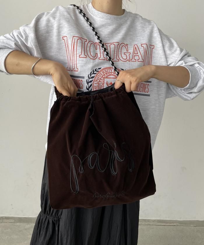 コードショルダーとパッケージモチーフの刺繍の組み合わせが可愛いバッグ。
