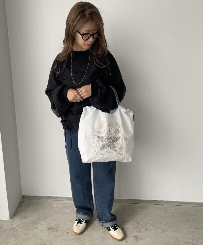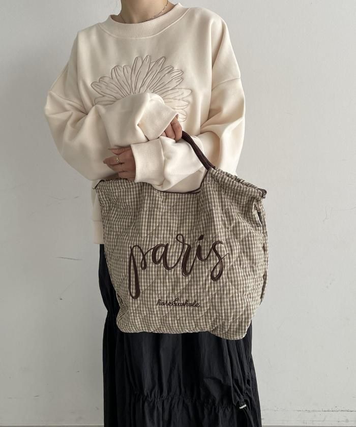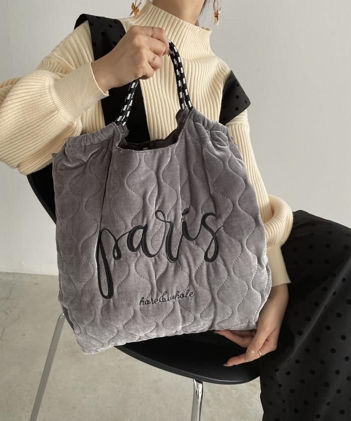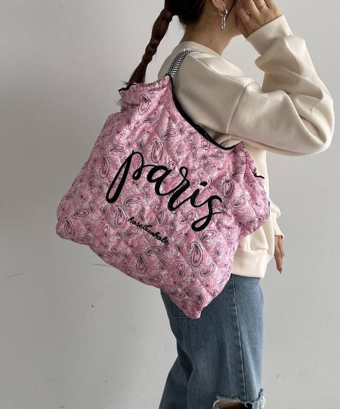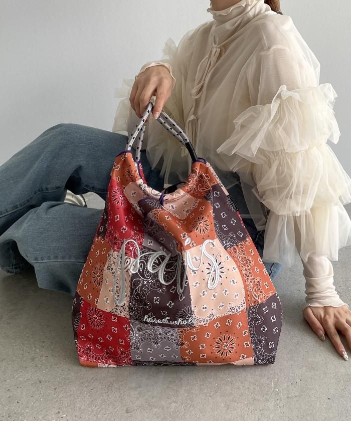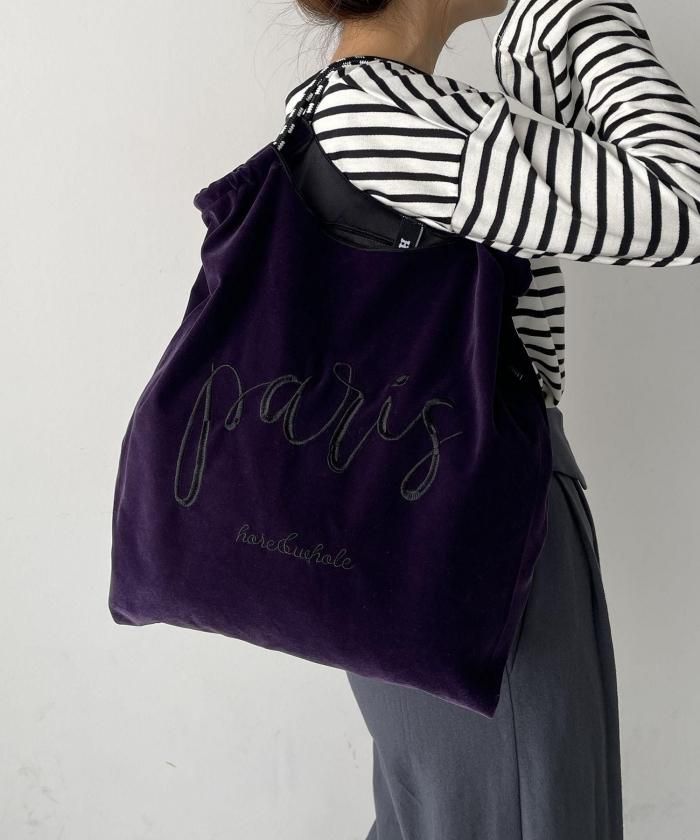 コードショルダーとパッケージモチーフの刺繍の組み合わせが可愛いバッグ。
