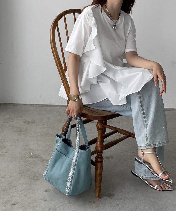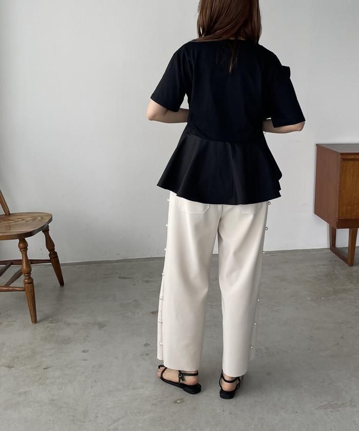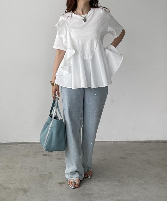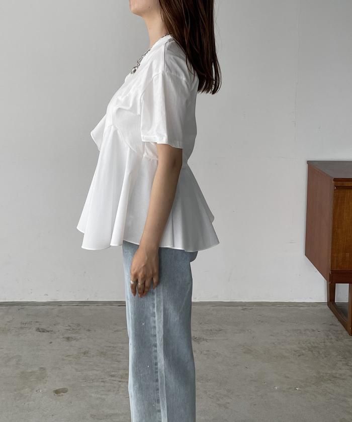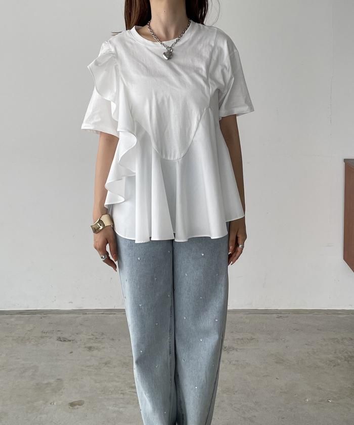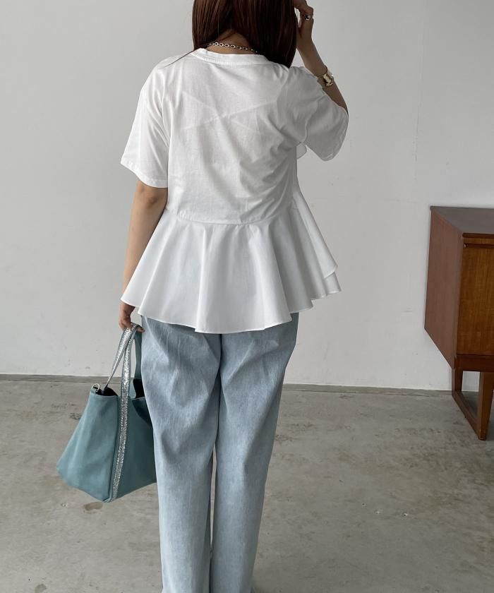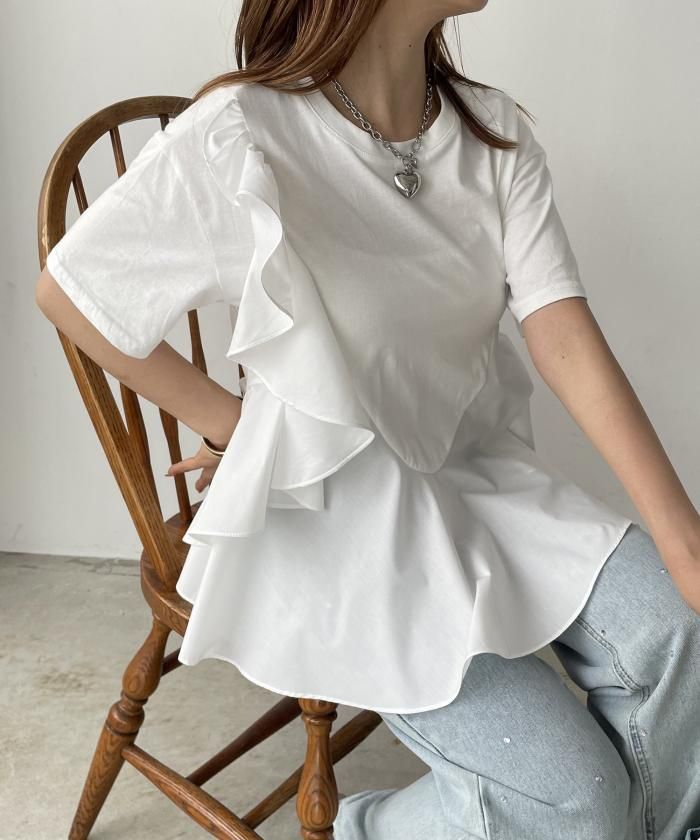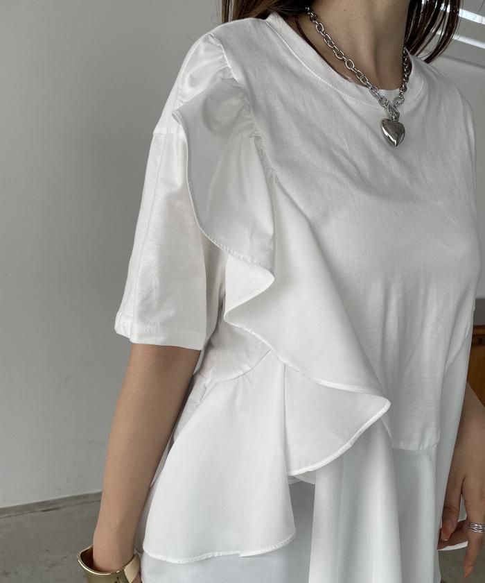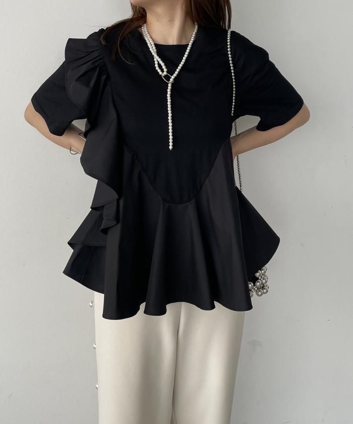 フリル部分をオーガンジーで切り替えたドッキングトップス