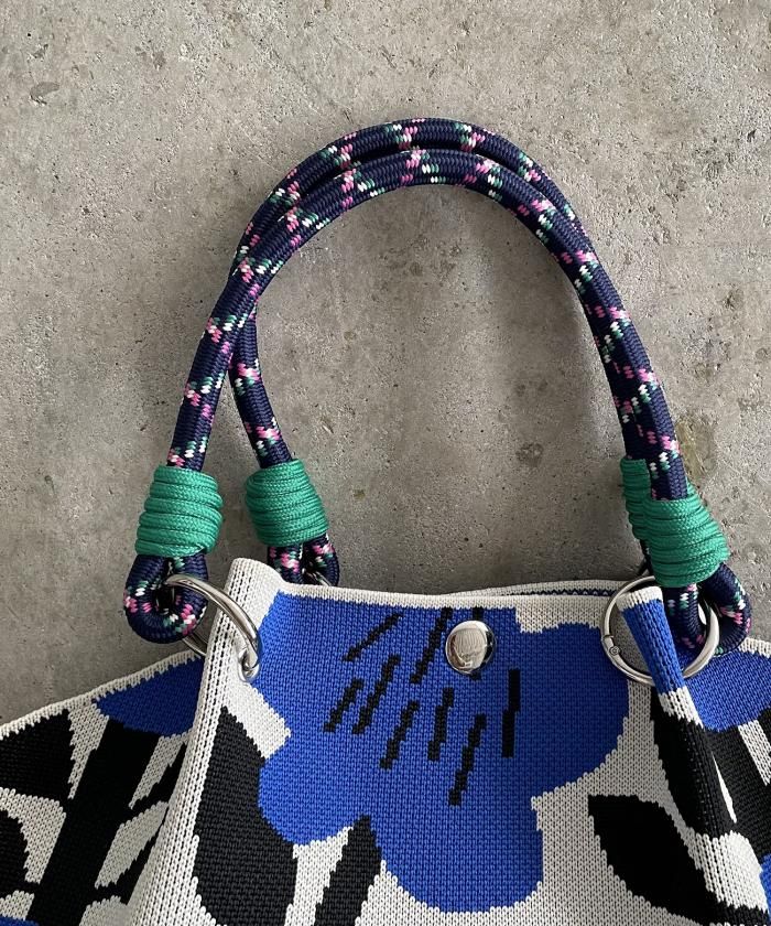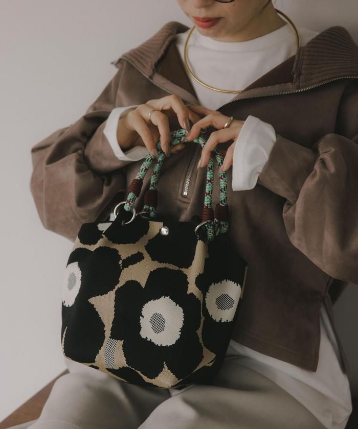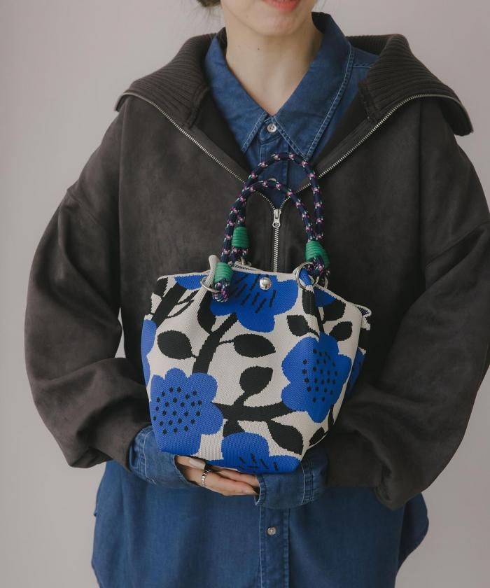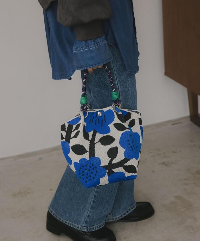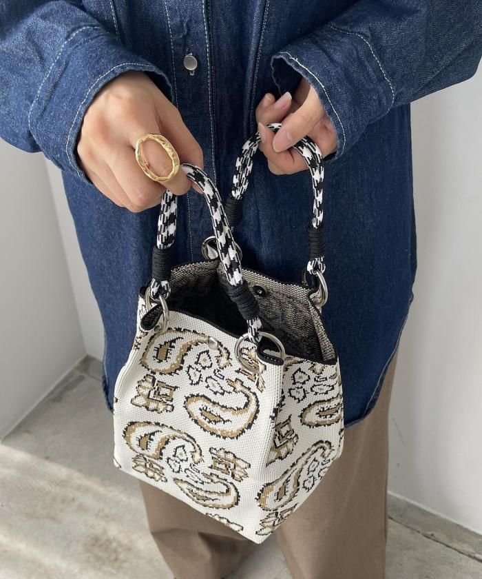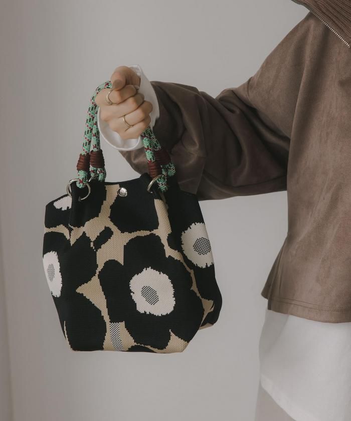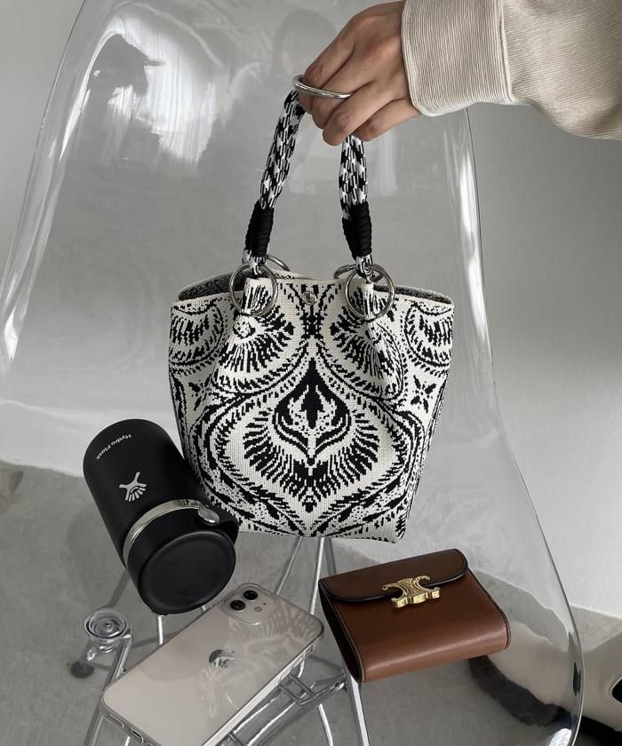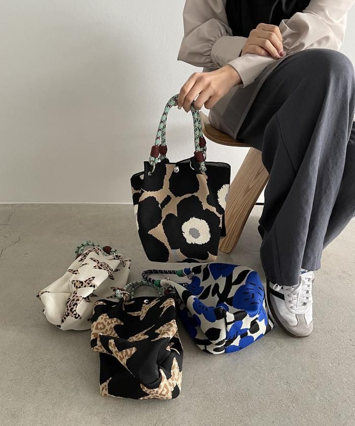 個性的な柄が目を引くニットハンドバッグ
