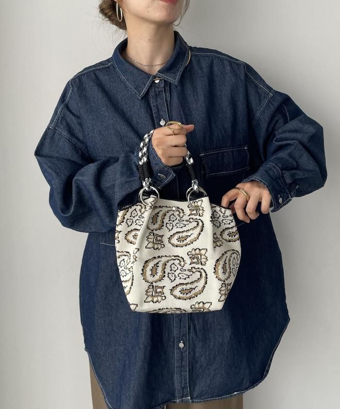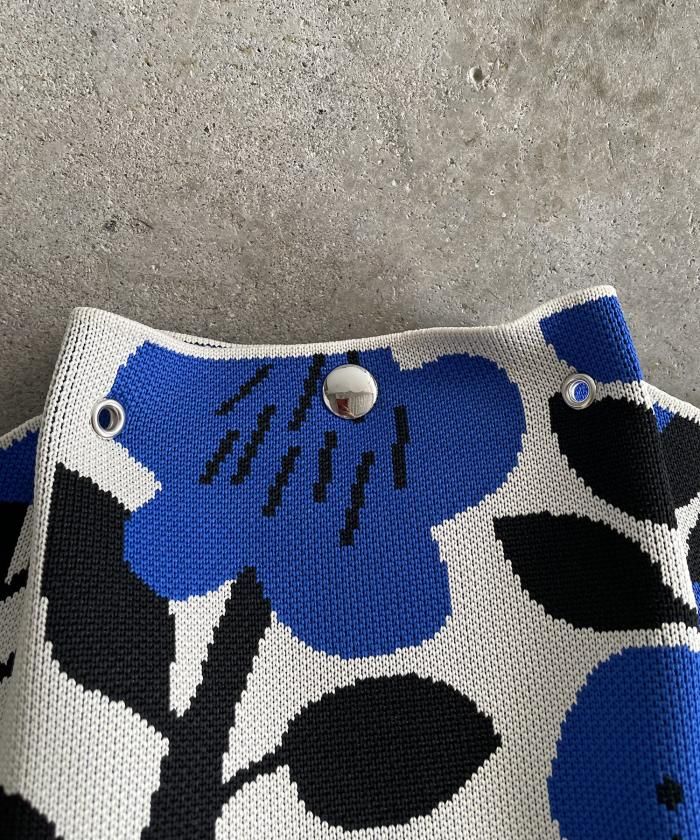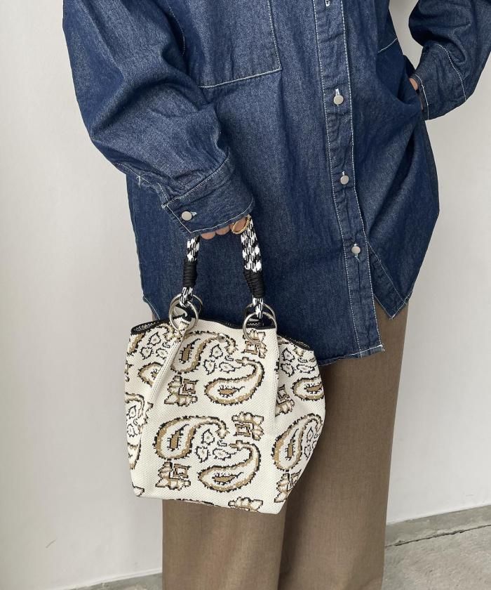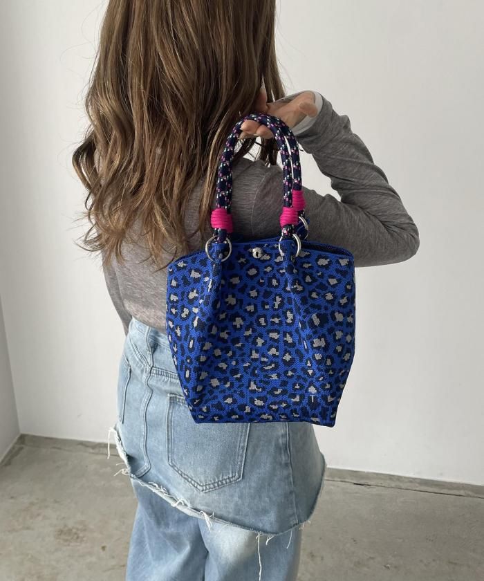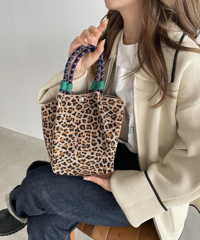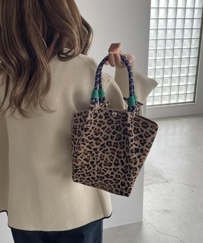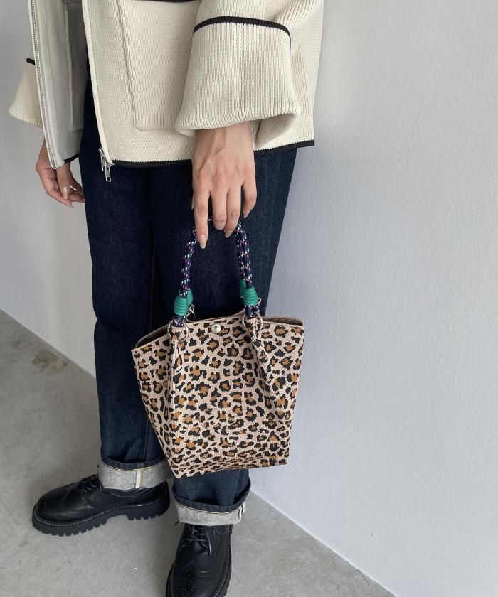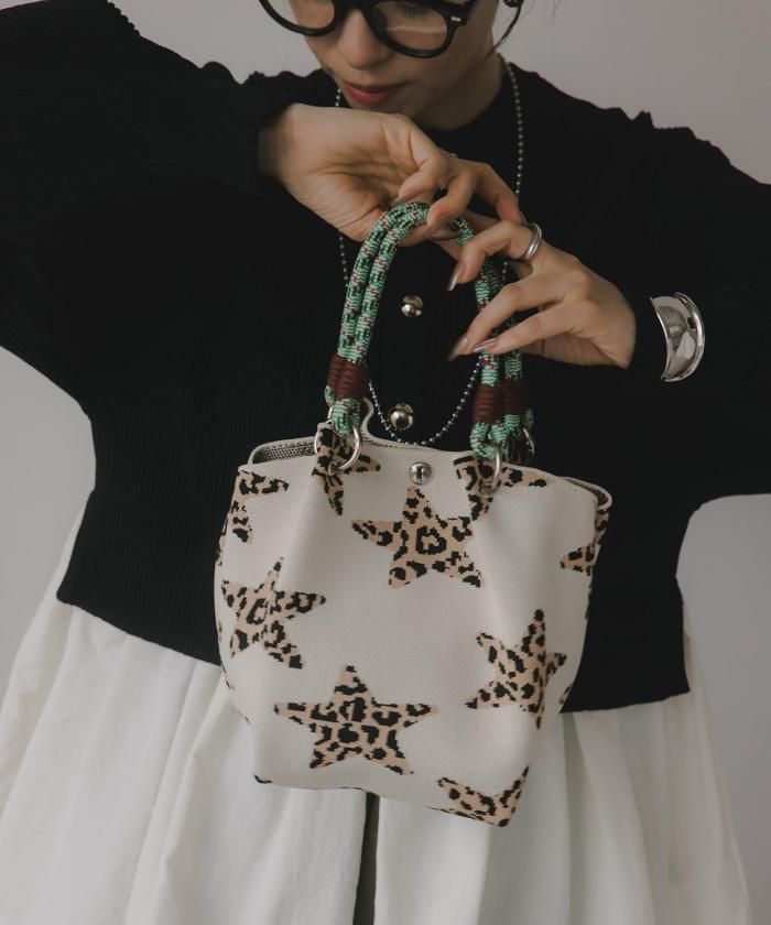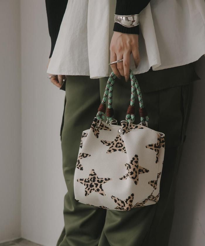 個性的な柄が目を引くニットハンドバッグ