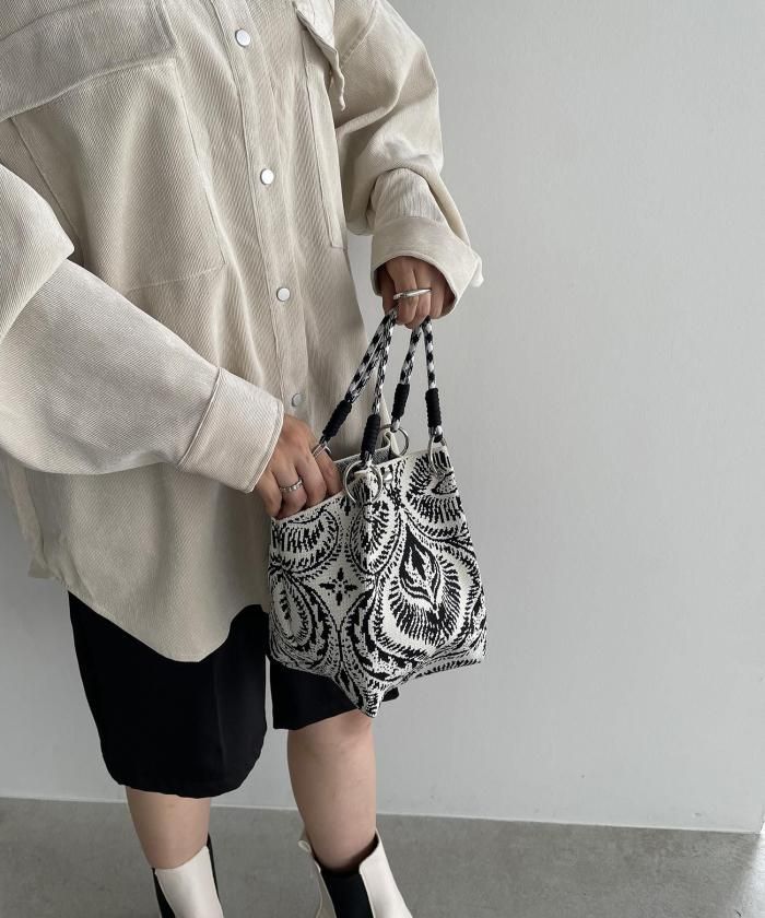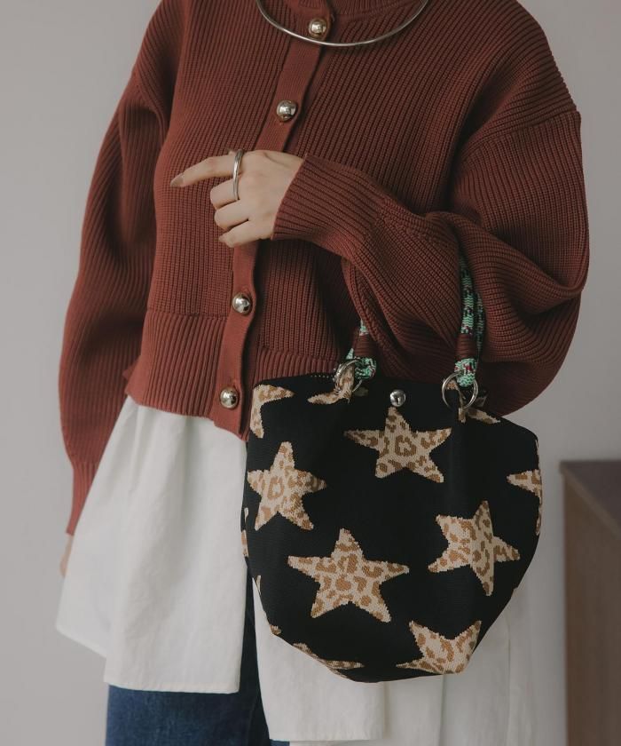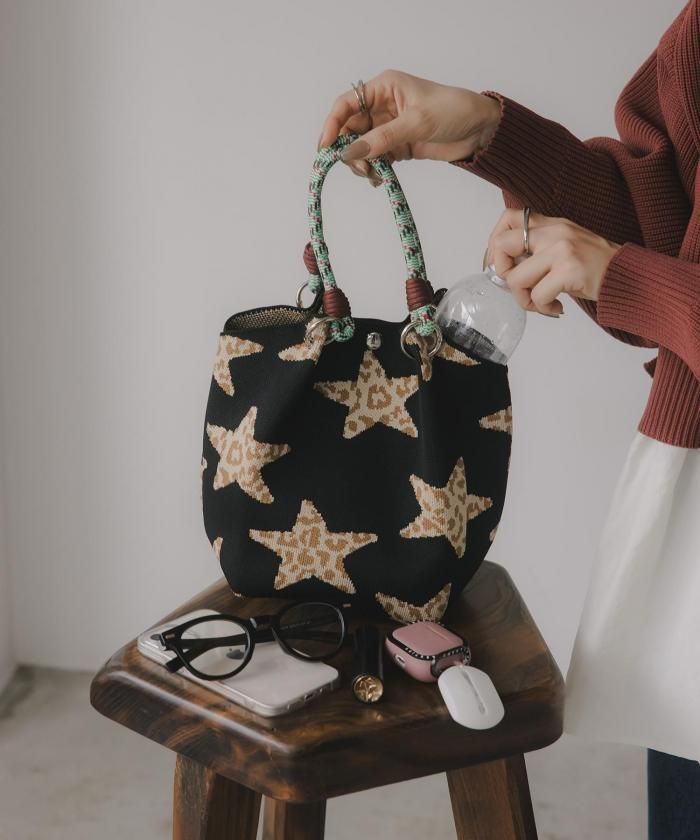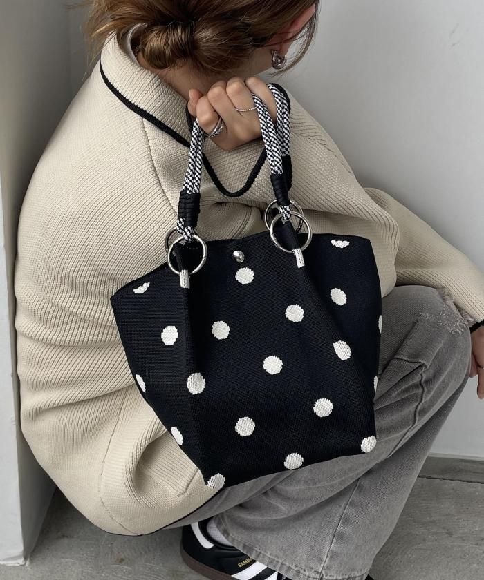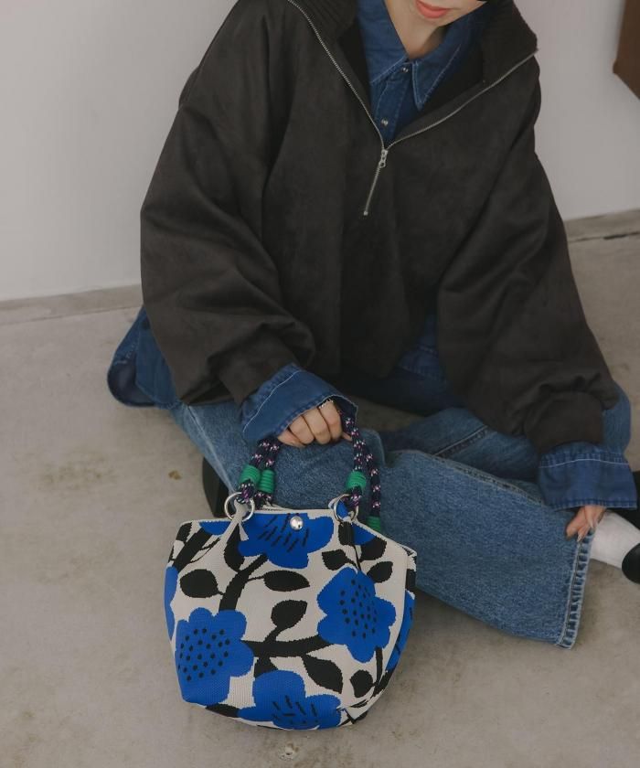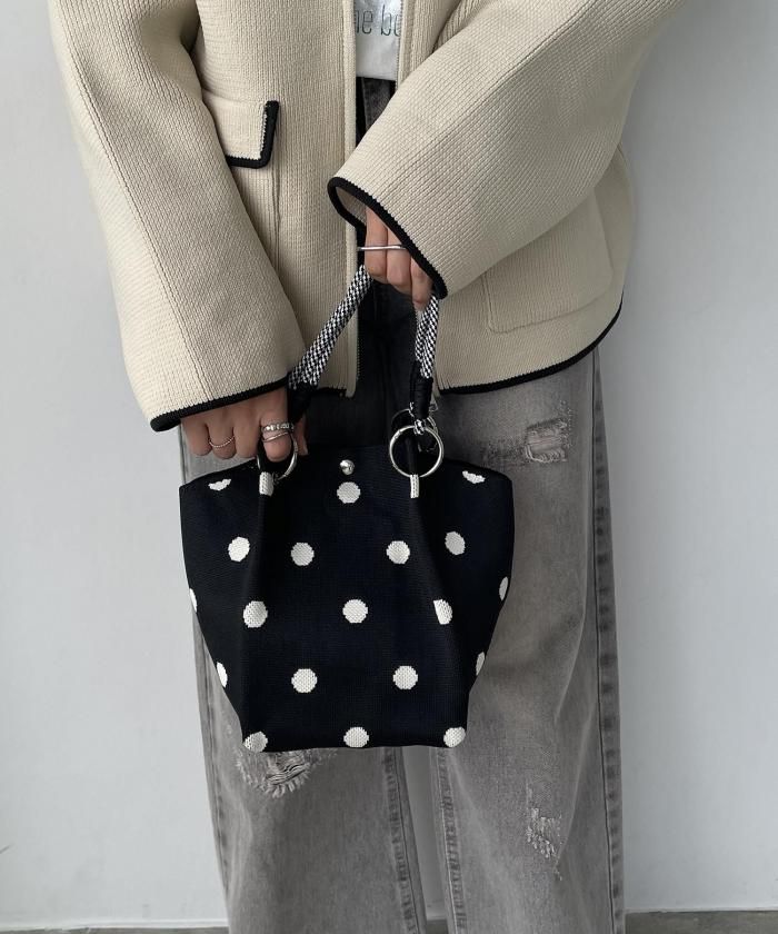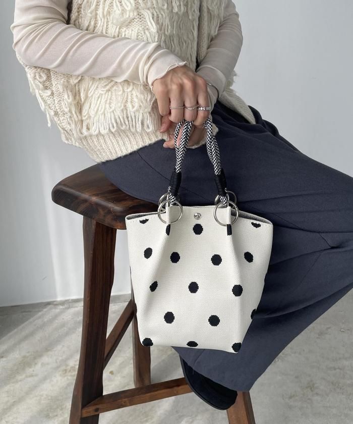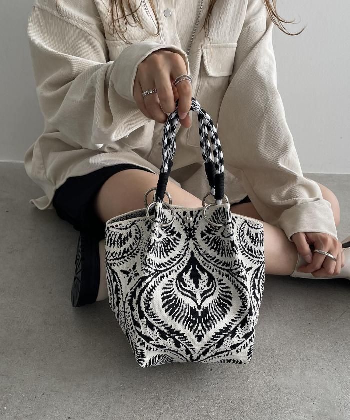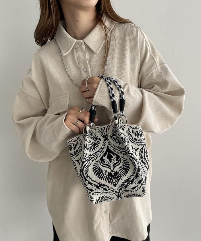 ニット素材模様ハンドバッグ