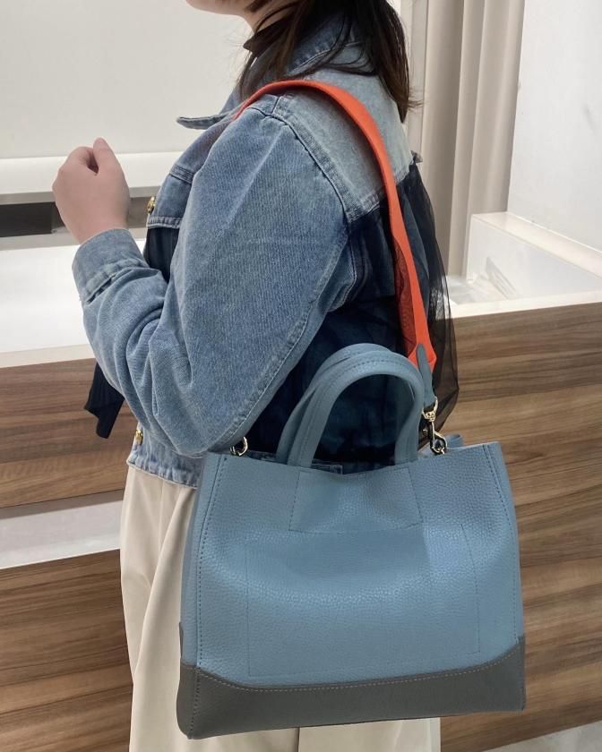 【A4対応】2WAYバイカラー配色ショルダースクエアトートバック