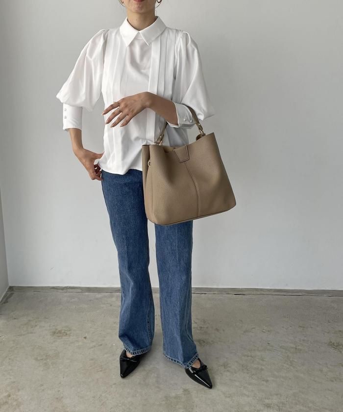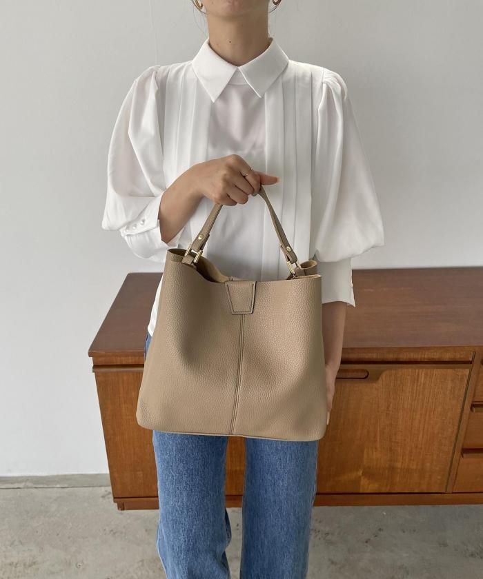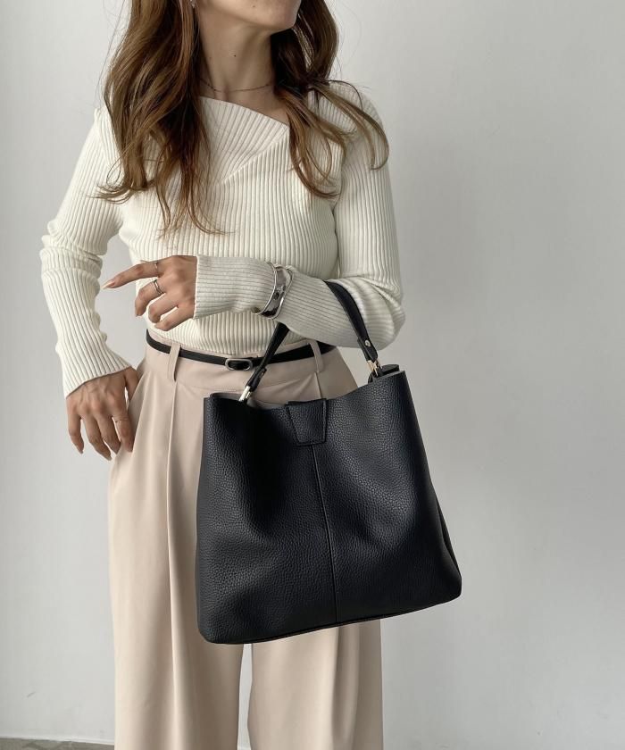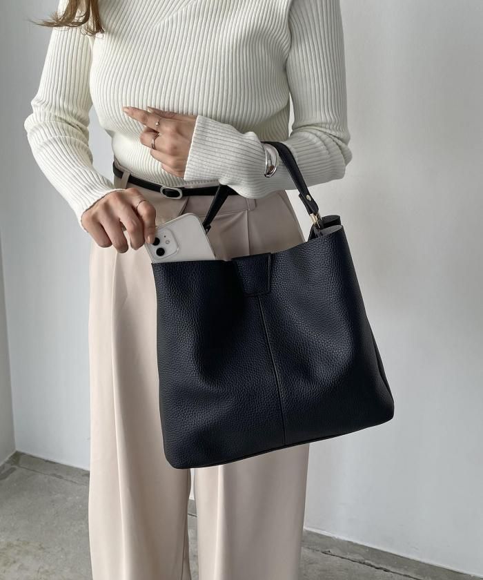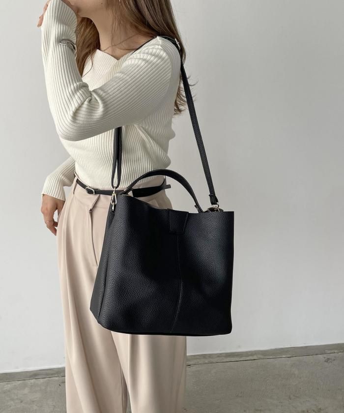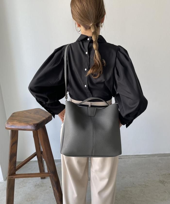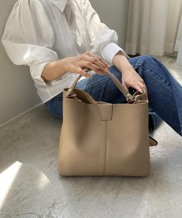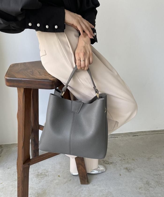 シンプルデザインでどんなスタイルにも合わせやすいバッグ。ショルダー紐がセットになっているので、用途に合わせてお使い分け頂けます。