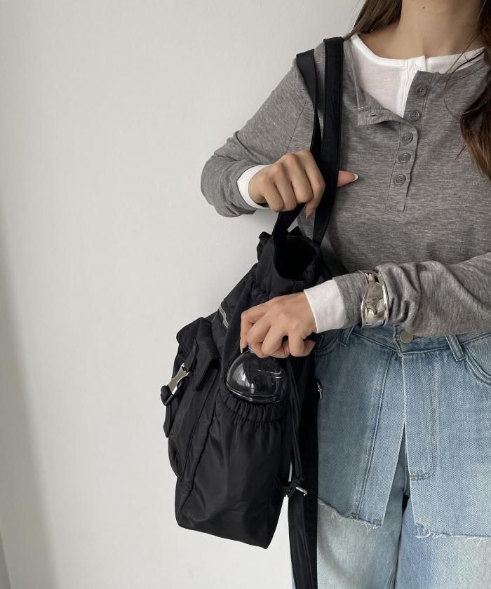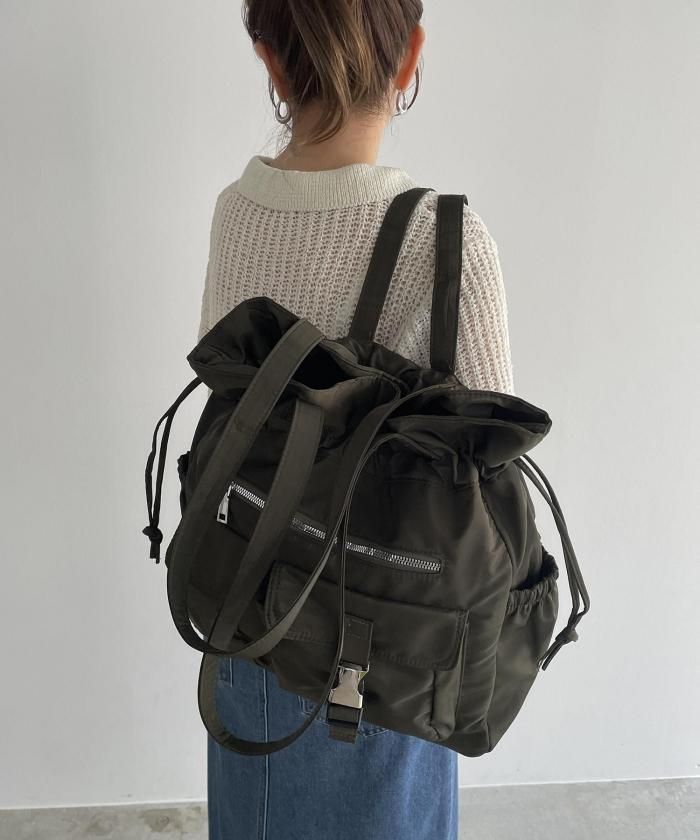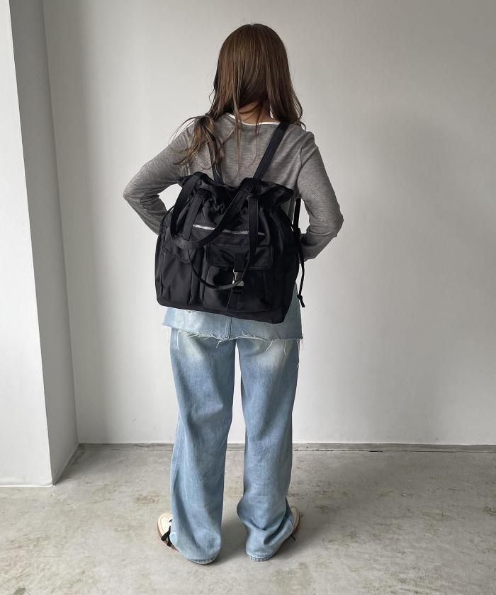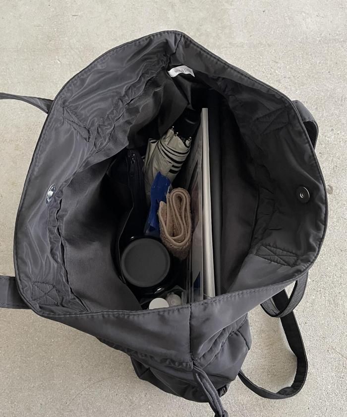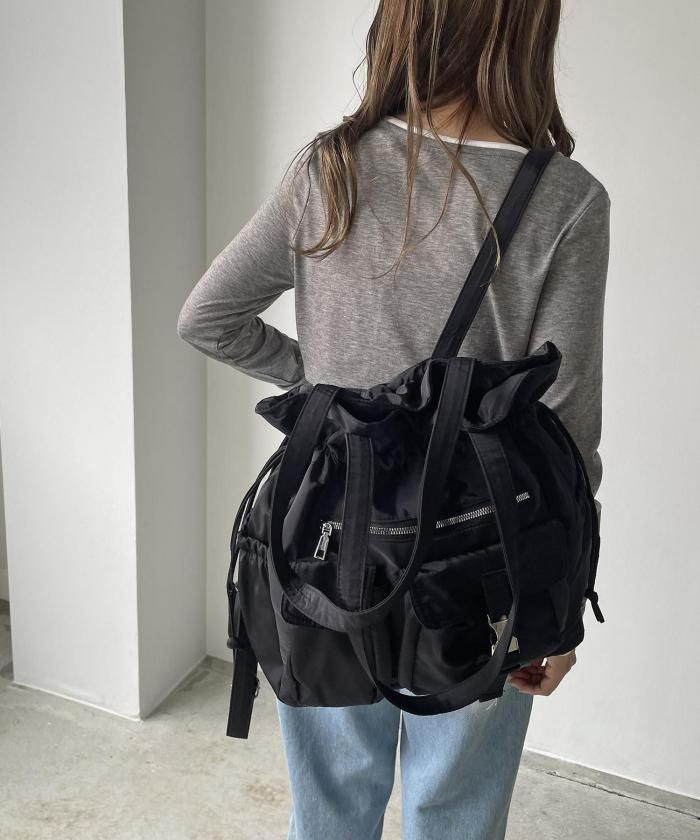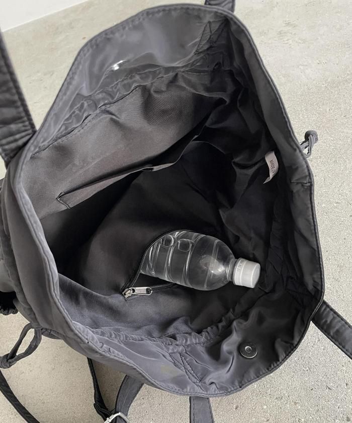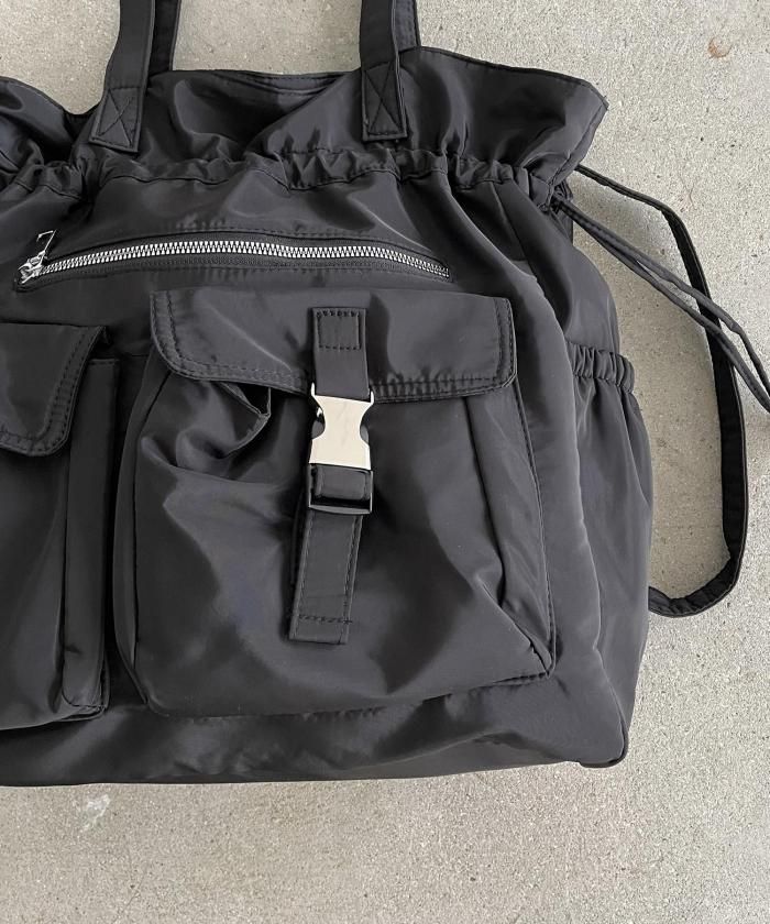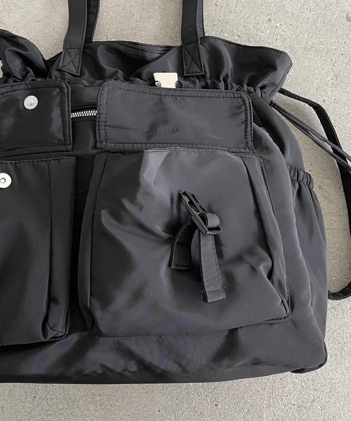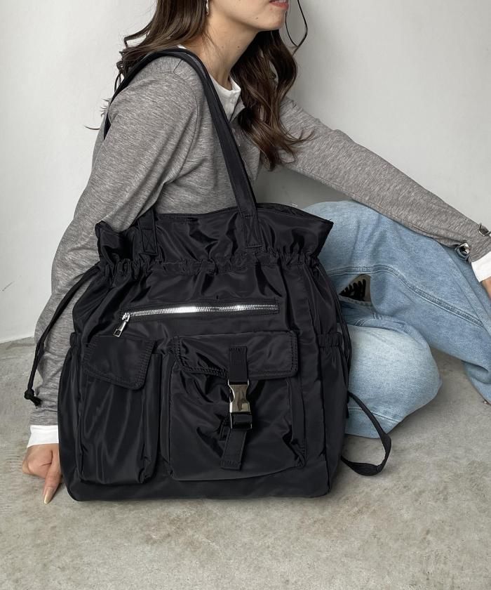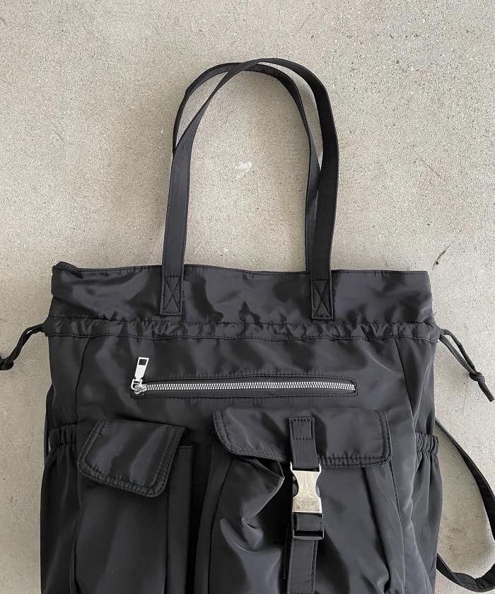 実用性に優れた巾着型のユーティリティナイロントートバッグ