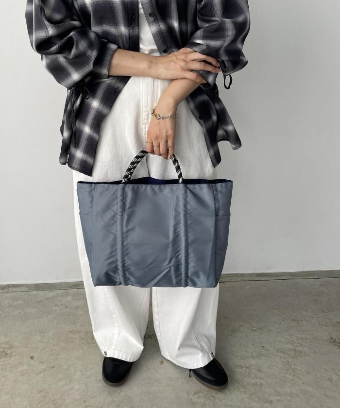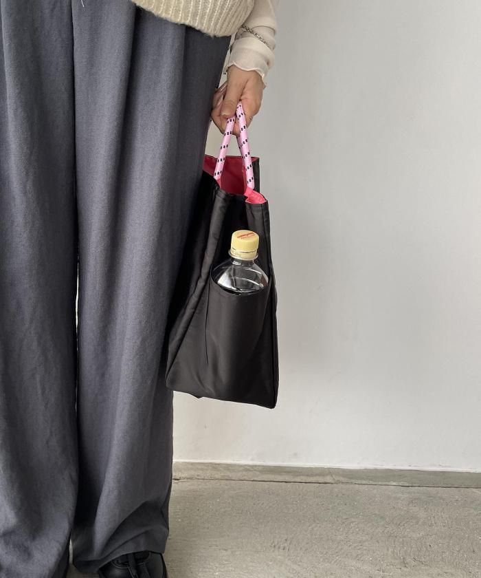 ナイロンの丈夫な素材で普段使いはもちろん、旅やアウトドア、日常使いにも、 用途に合わせて活躍するマルチなアイテム。リバーシブル仕様で、カラー配色がかわいいバッグです。サイドにはボトルがすっぽりと入る深めのポケットあり!ハンドル部分は重たい荷物でもしっかりと持つことができ、トレンド感もあるロープハンドルです。ユニセックスでも使用できるデザインです。