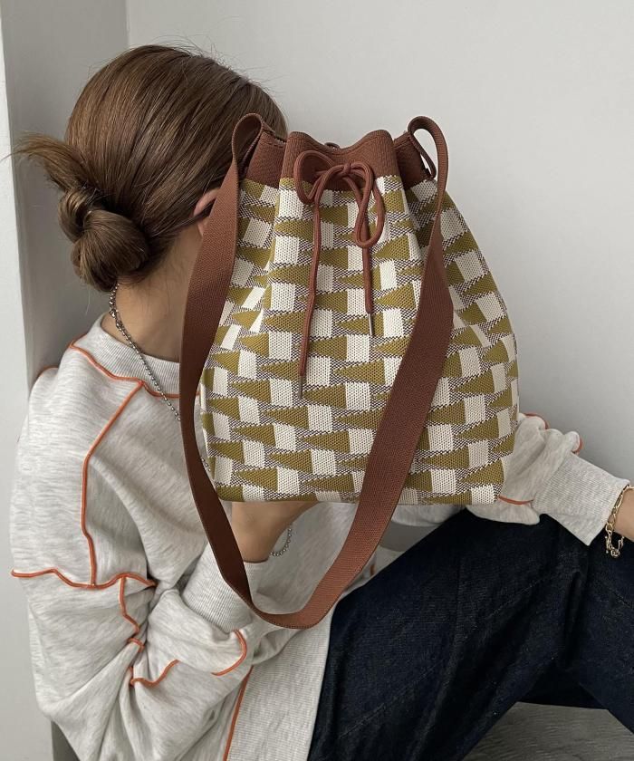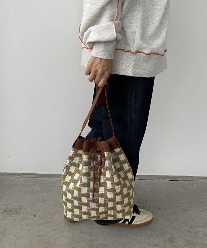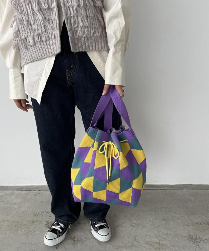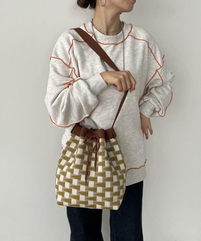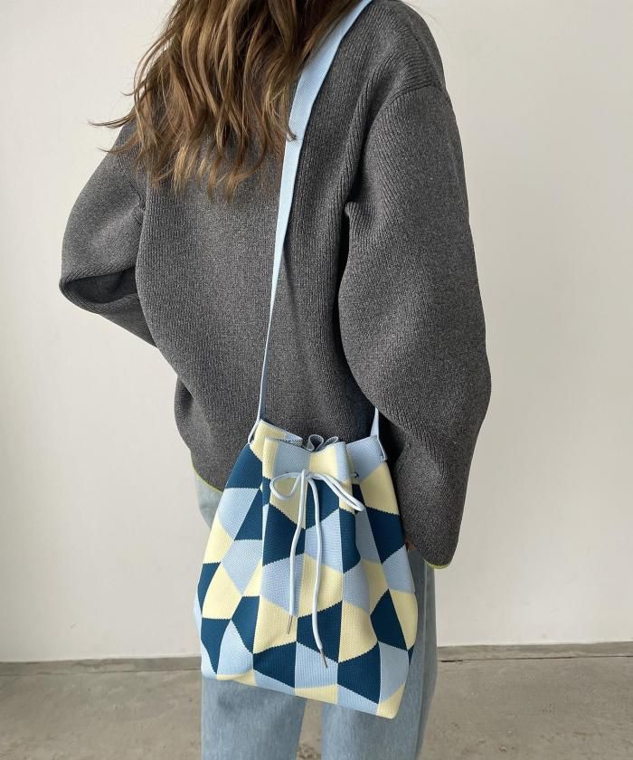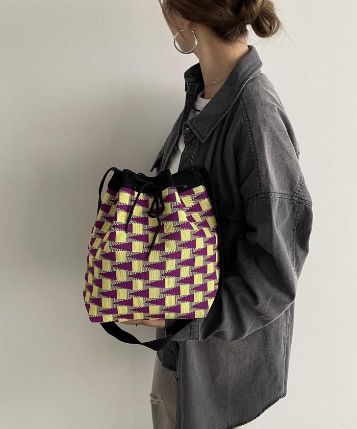 表面の起毛感がないしっかりとした厚みのあるニットを使用しておりシーズン問わずオールシーズンお使いいただけます。ニットならではの多少の伸縮性もあり、持ち歩きやすい軽量なバッグです。コーデに取り入れやすいサイズ感でちょっとしたお出かけに最適です。