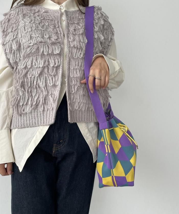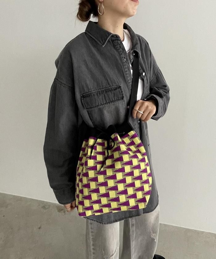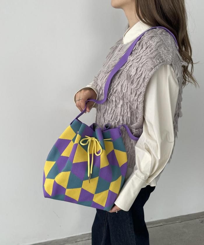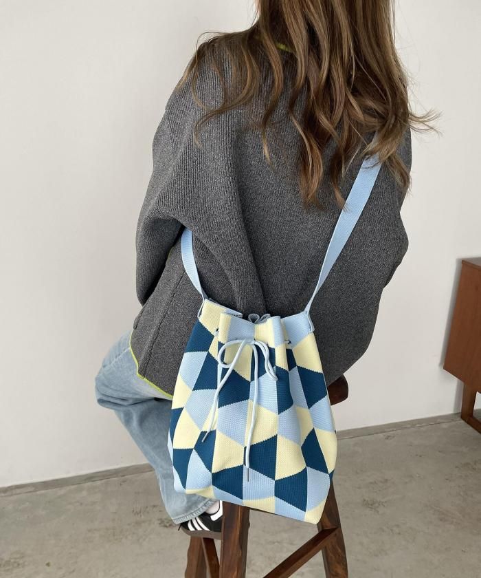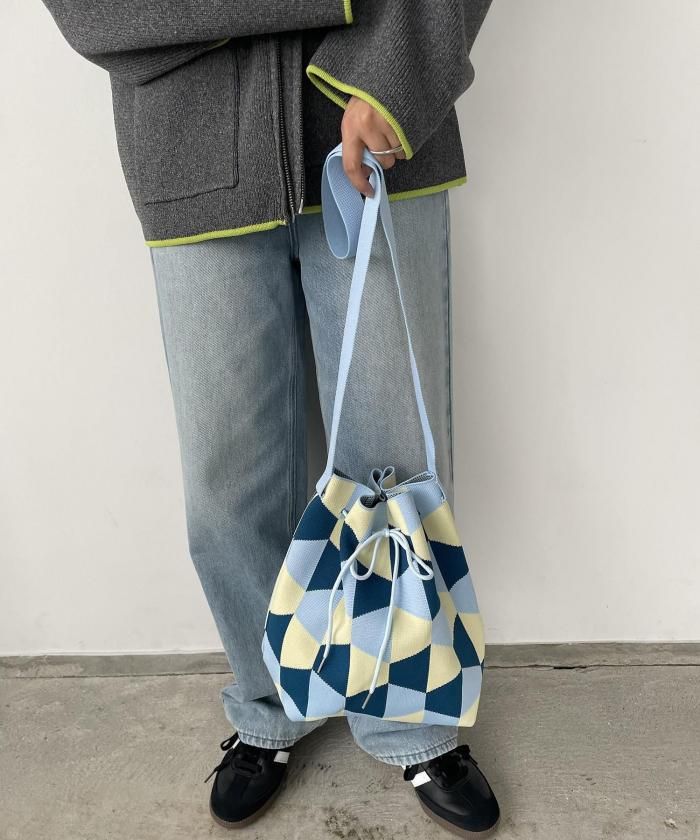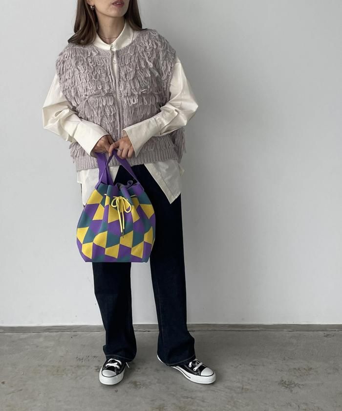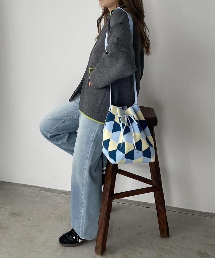 表面の起毛感がないしっかりとした厚みのあるニットを使用しておりシーズン問わずオールシーズンお使いいただけます。ニットならではの多少の伸縮性もあり、持ち歩きやすい軽量なバッグです。コーデに取り入れやすいサイズ感でちょっとしたお出かけに最適です。