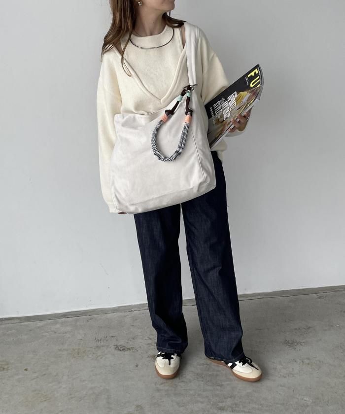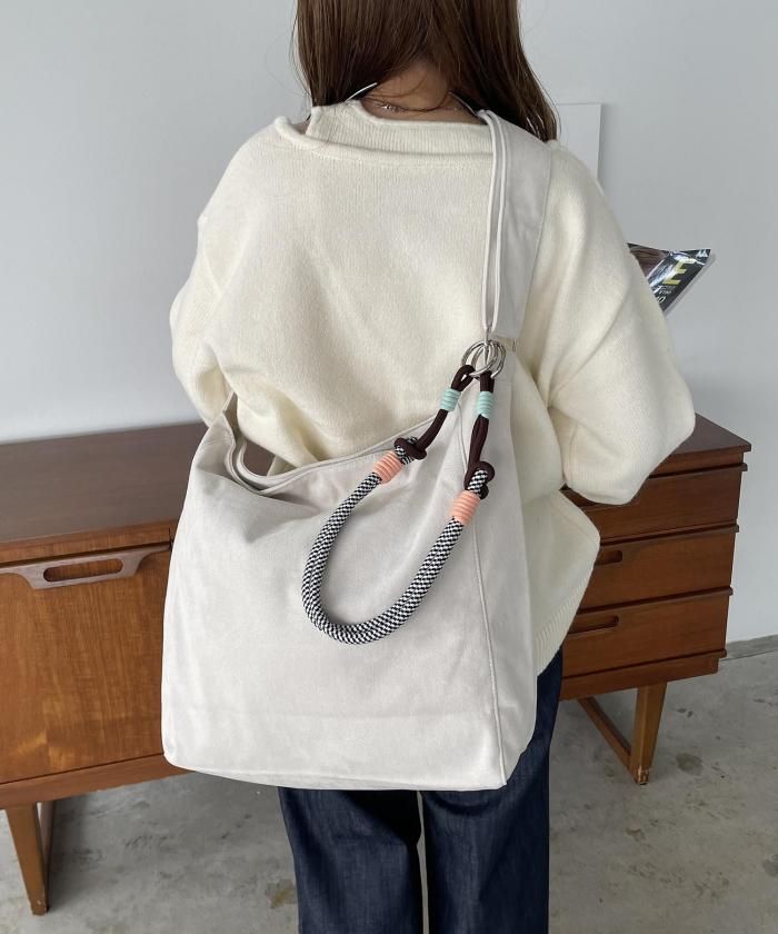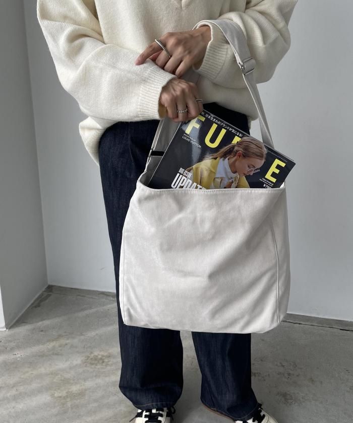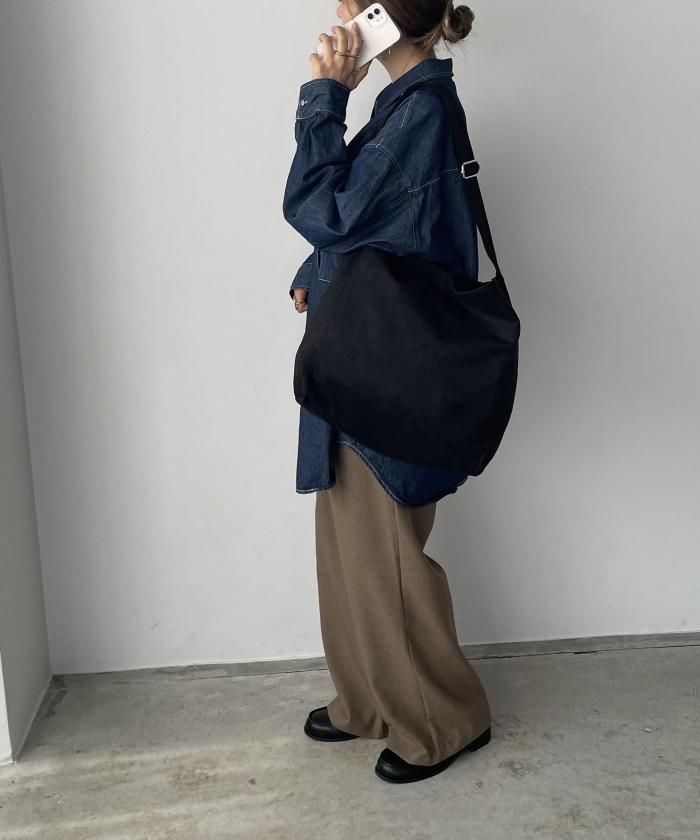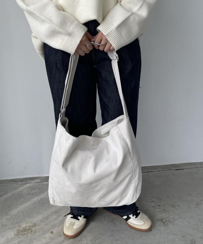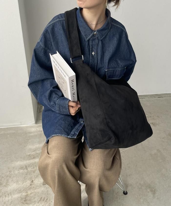 肌さわりの良い滑らかなフェイクスエードの大容量のショルダーバッグ。ワイドなマチとPCも入るサイズ感で通勤や通学、旅行など幅広いシーンで活躍。シンプルながらも存在感があり、カジュアルからきれいめまで合わせやすい万能デザイン。ショルダーストラップは長さ調節可能◎