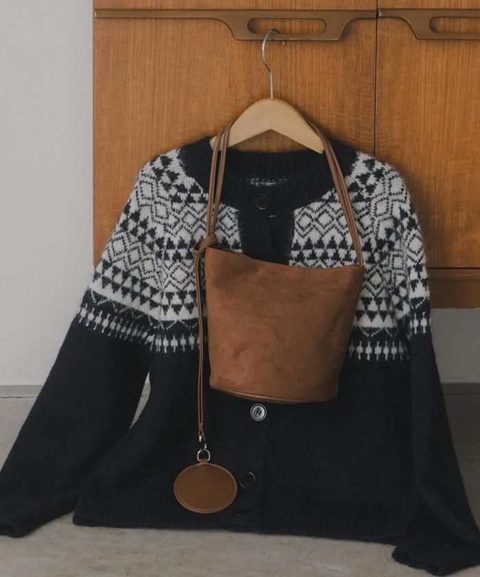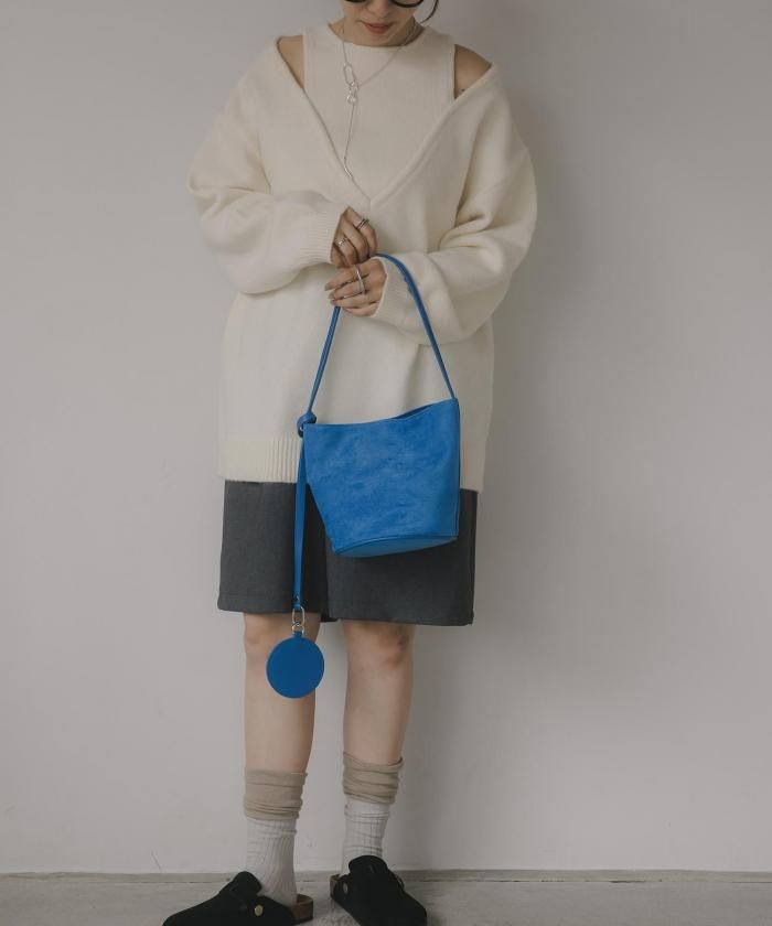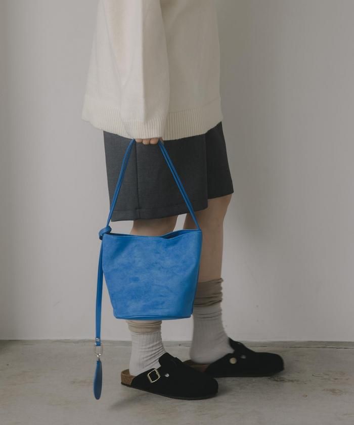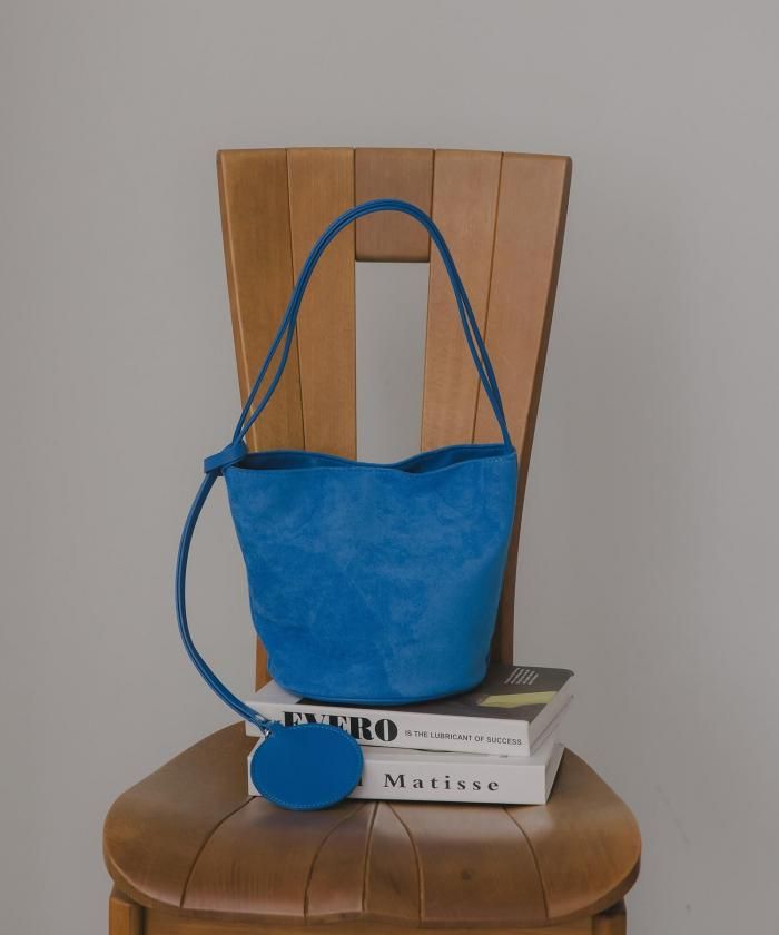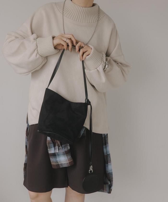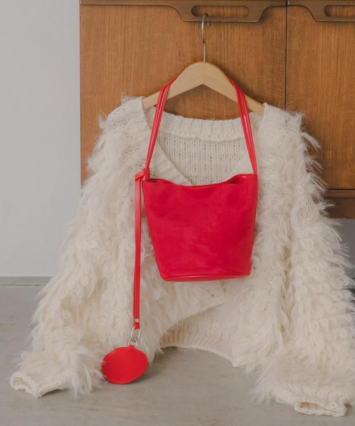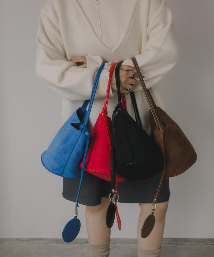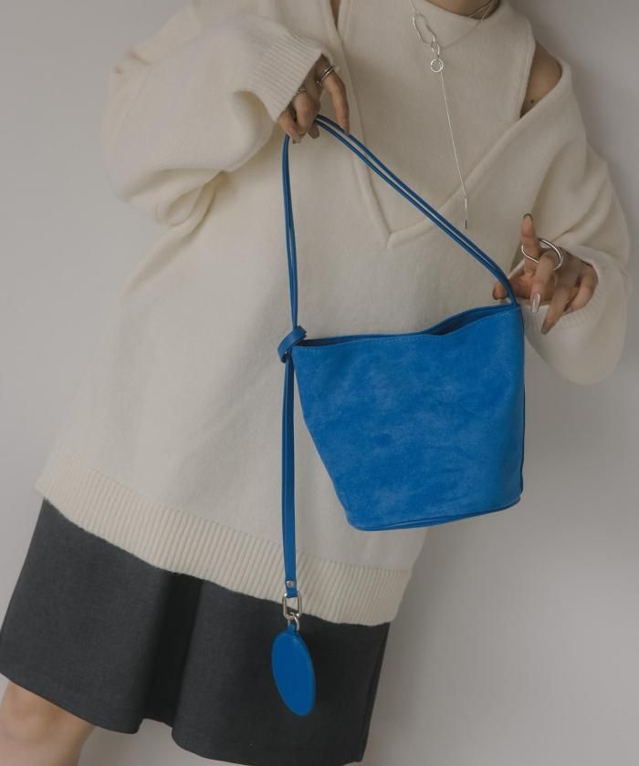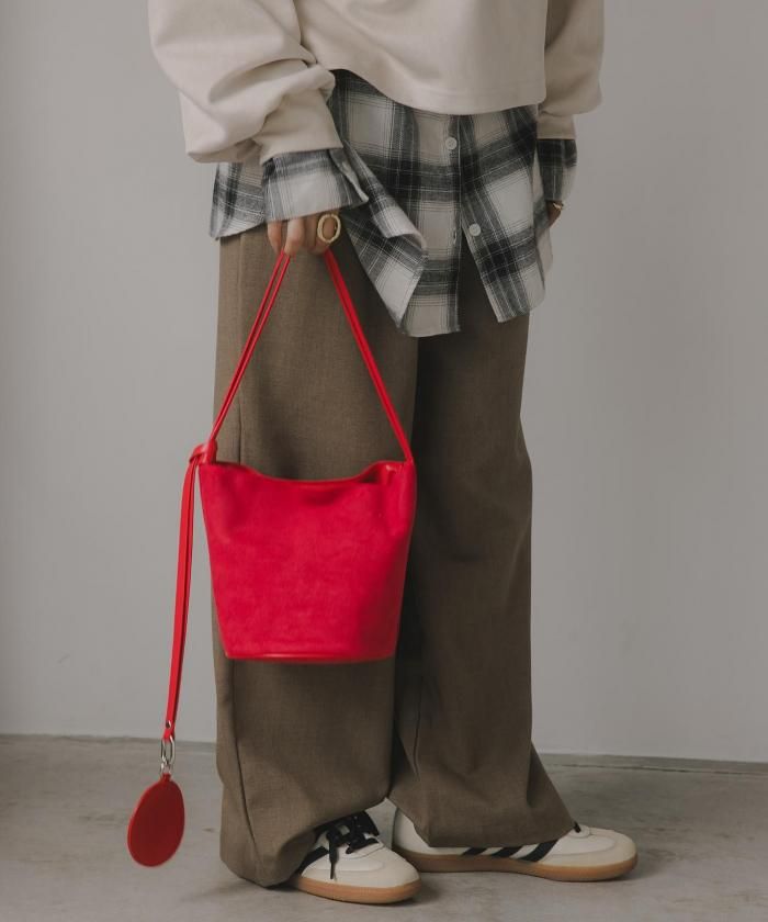 【チャーム付】フェイク スエード バケツ ショルダーバッグ