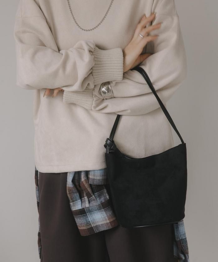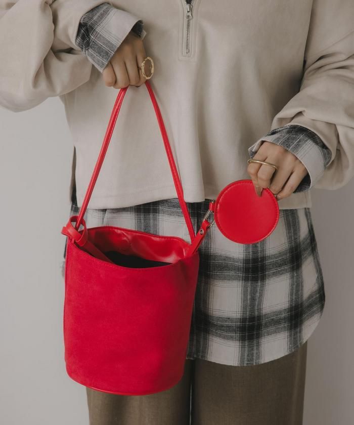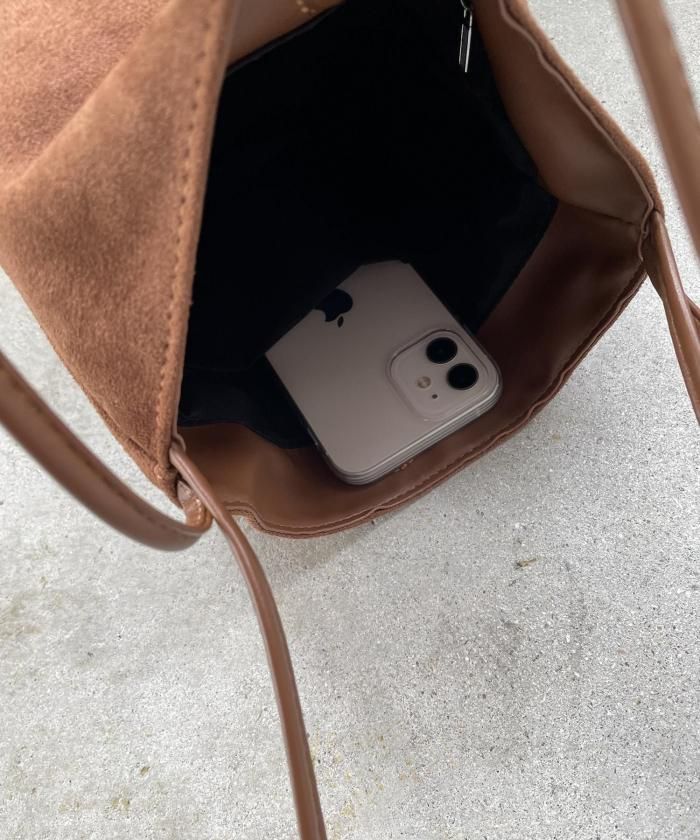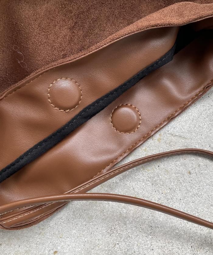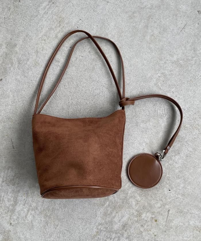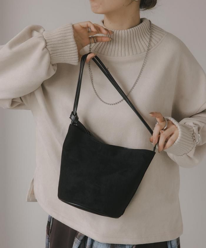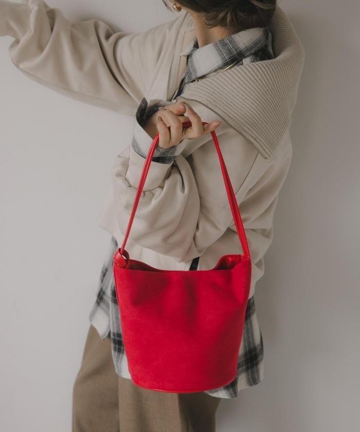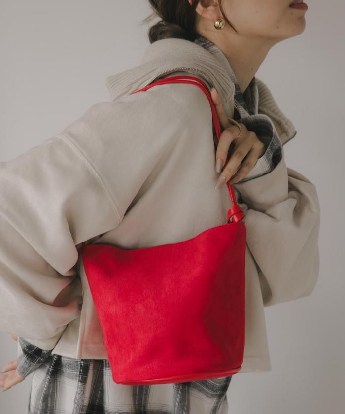 トレンドのフェイクスエード素材のバケツ型ショルダーバッグ