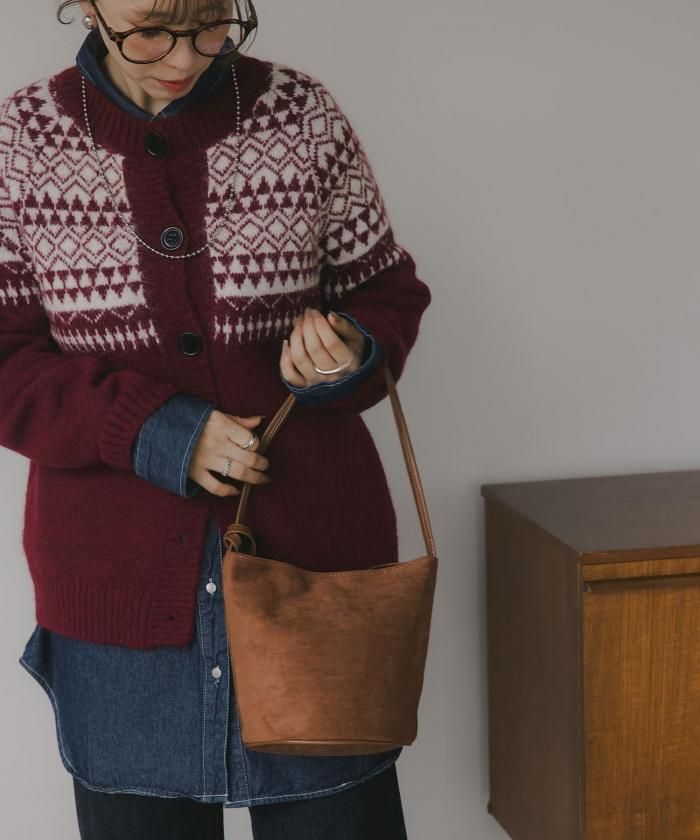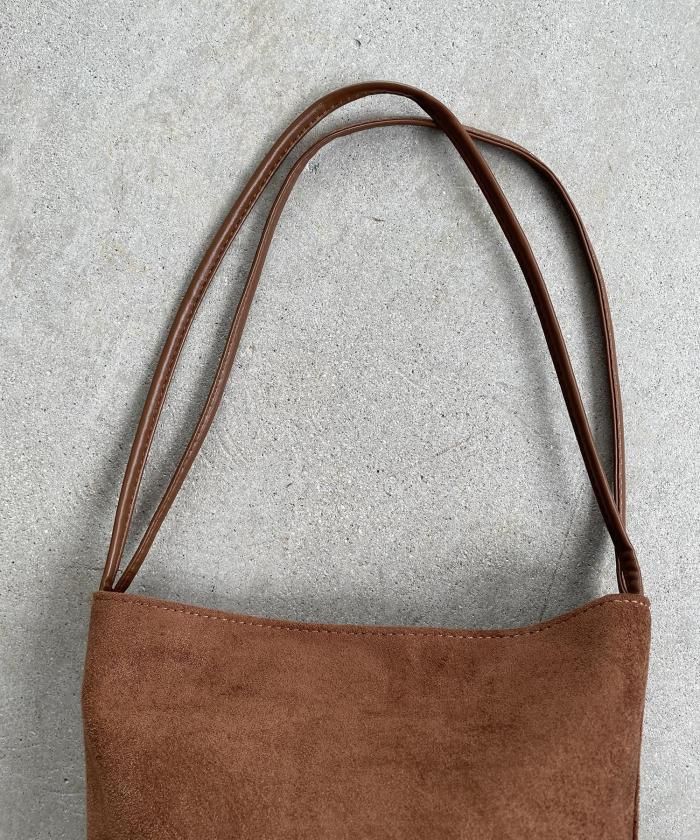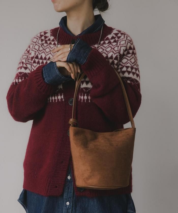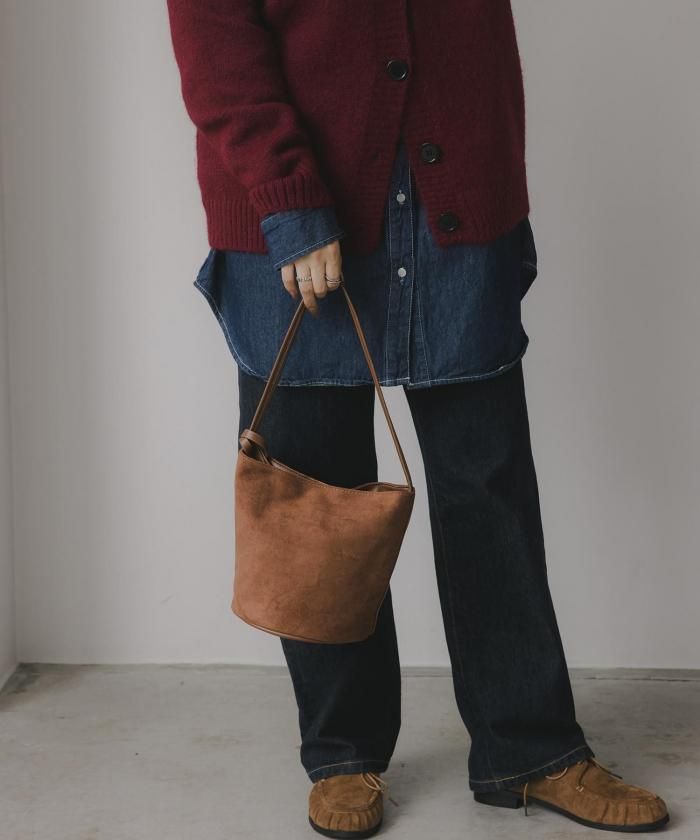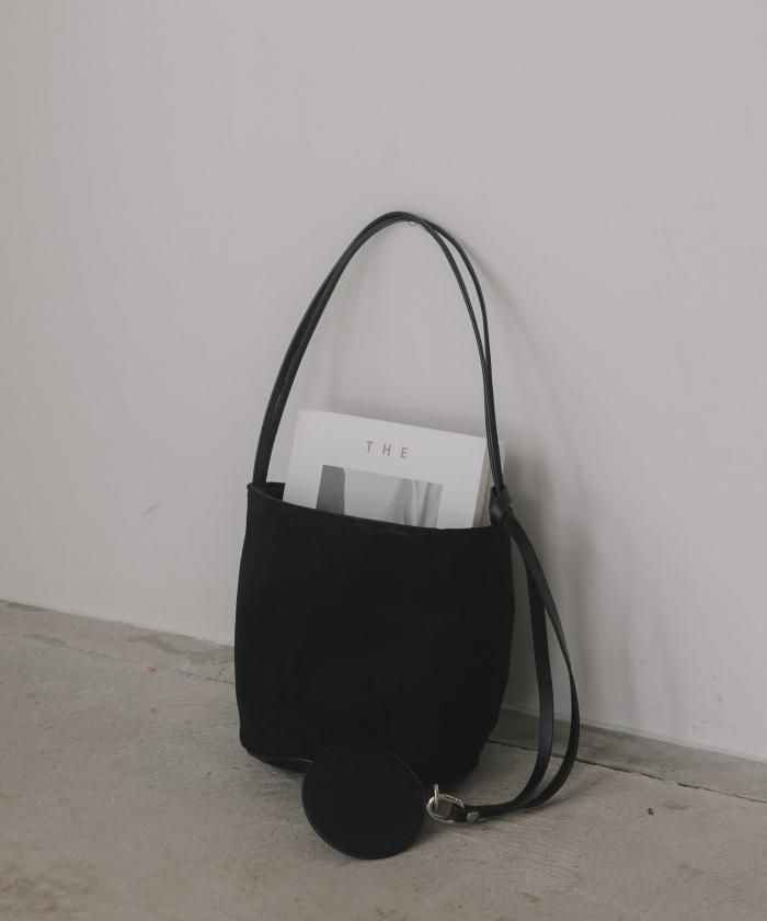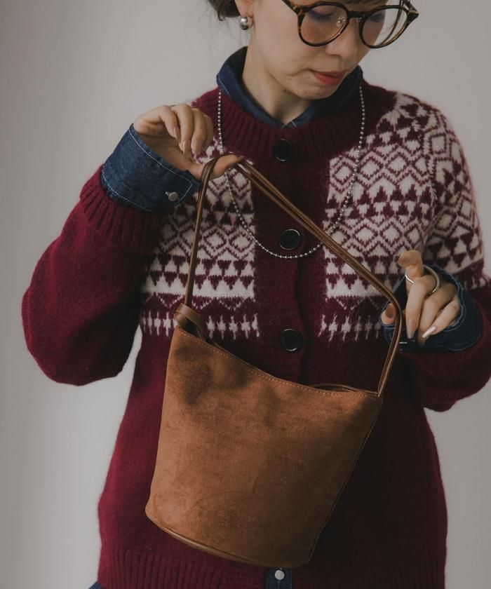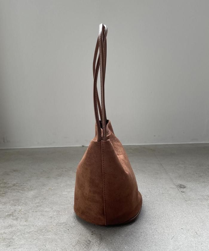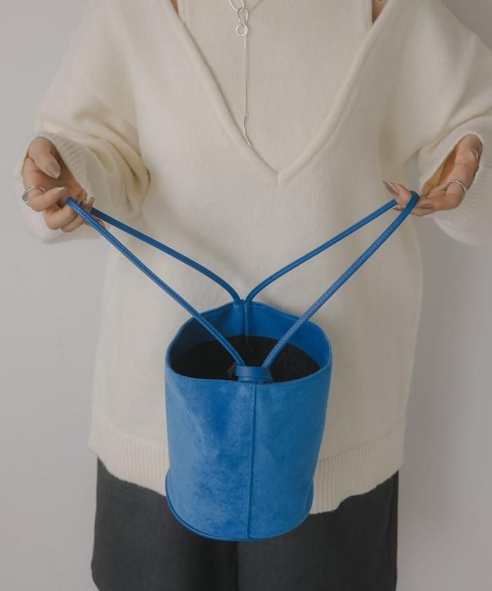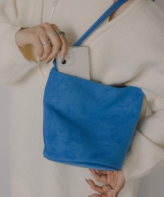 トレンドのフェイクスエード素材のバケツ型ショルダーバッグ