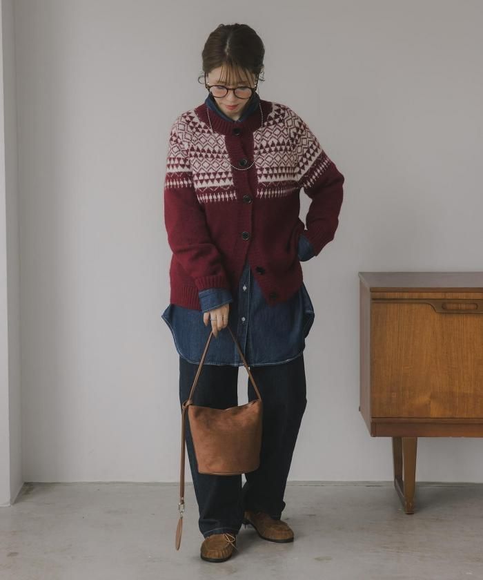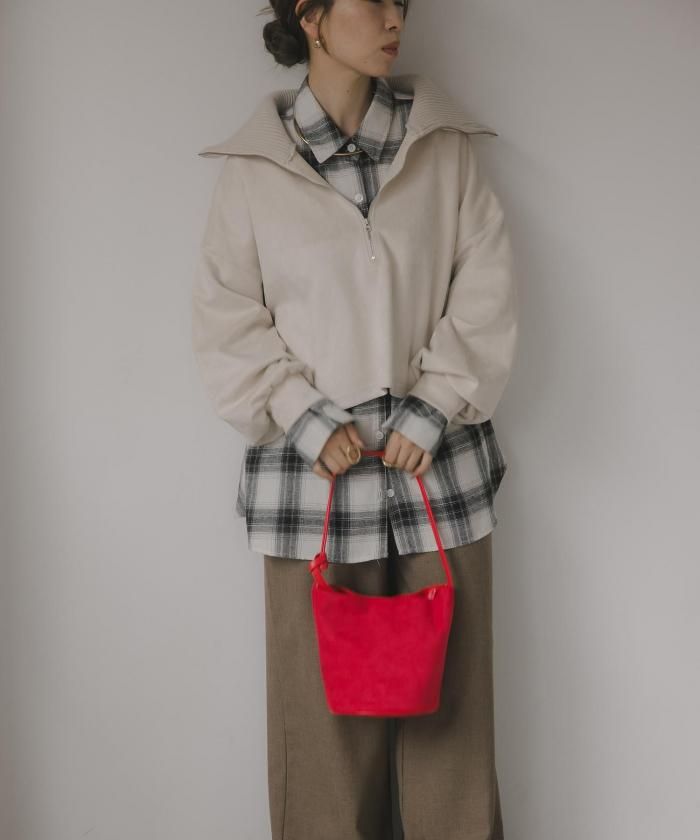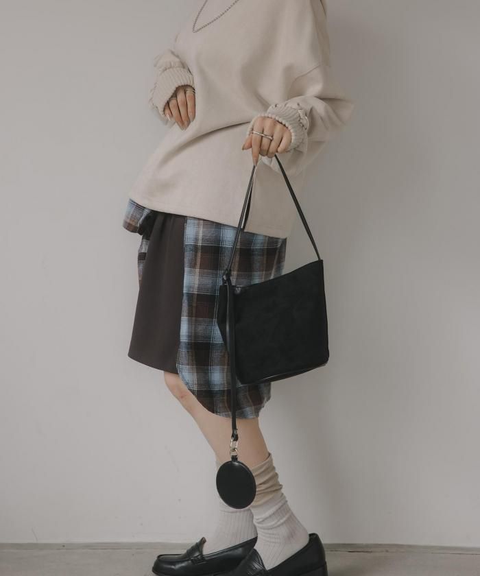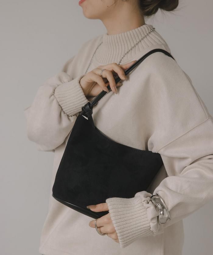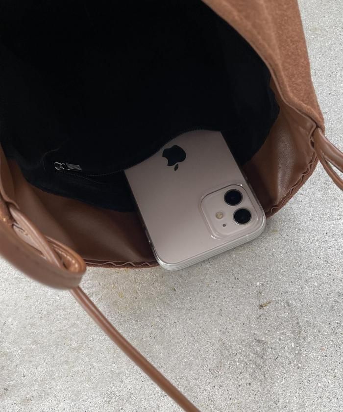 トレンド素材のスエードの風合いと丸いレザーチャームがシーズンライクなバッグ。スマホに定期、財布などデイリーに必要な小物がしっかり入るサイズです。摩擦の多いショルダー部分と丸形チャームにはフェイクレザーを使用しています。