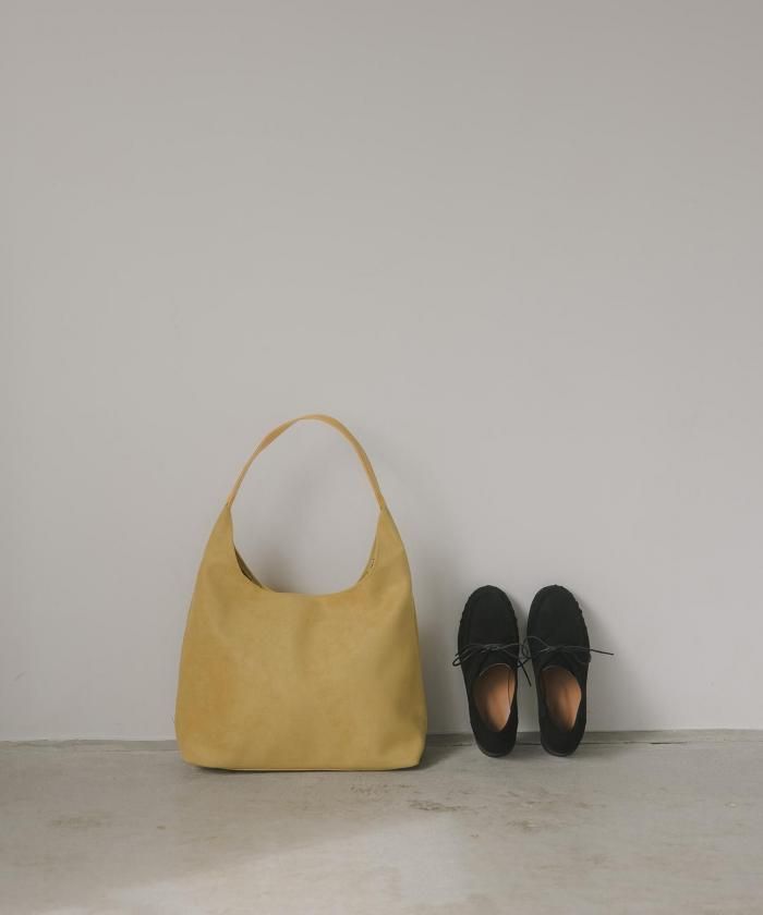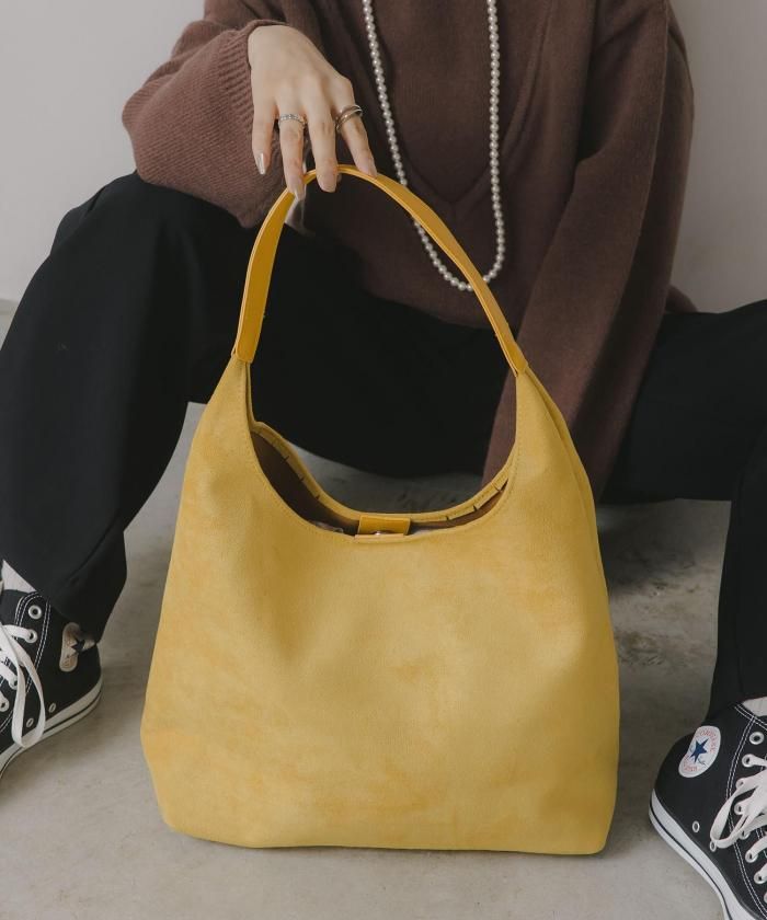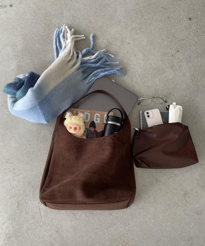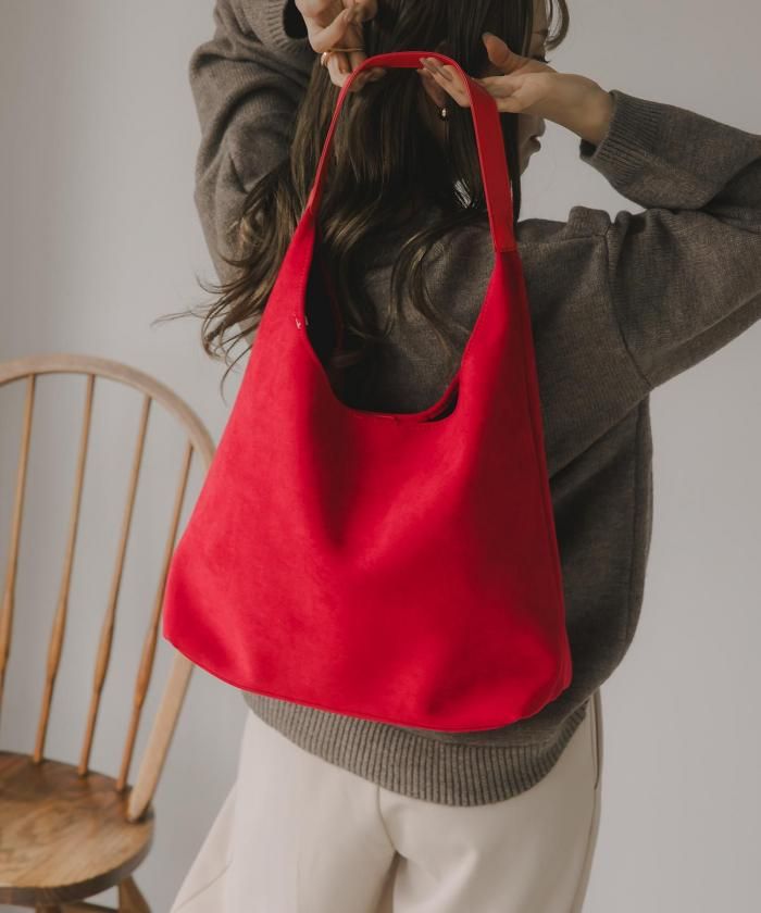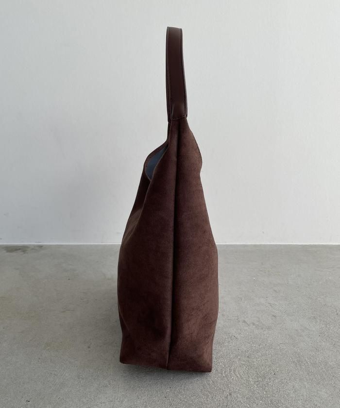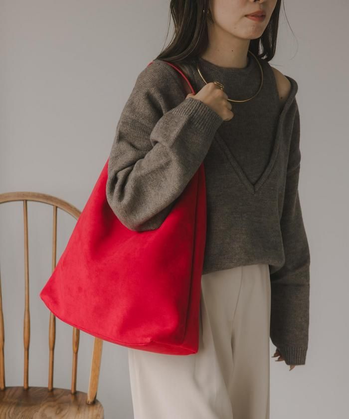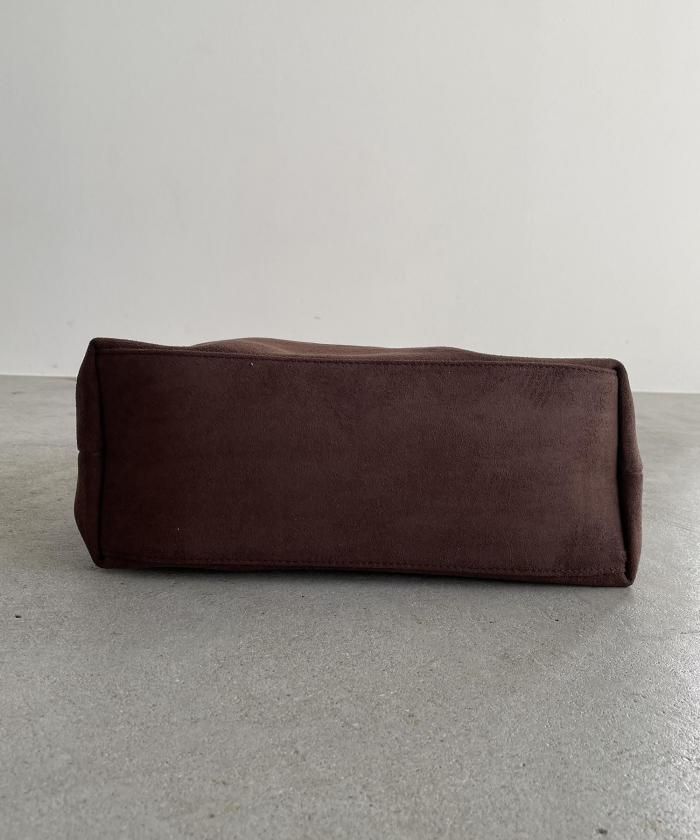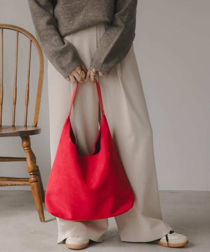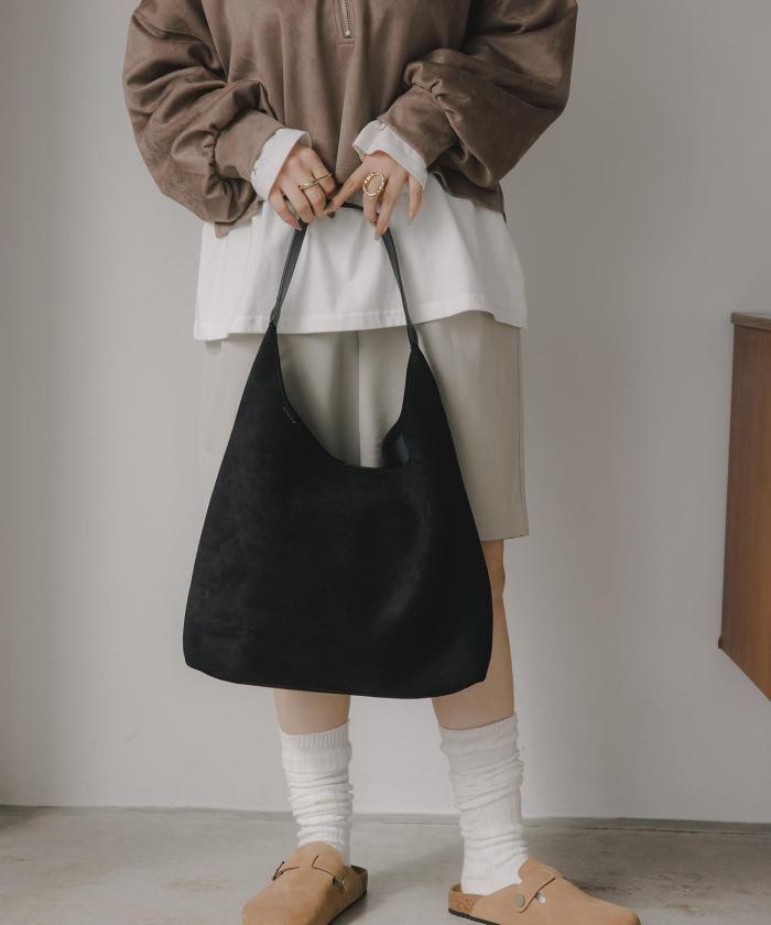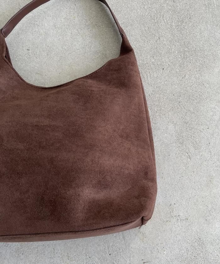 トレンド素材のスエードを使ったシーズンムード高まるショルダーバッグ。A4、PCもしっかり収納できるサイズ感でデイリーに使いたくなるバッグ。耐久性に考慮し、摩擦の多いショルダー部分にはフェイクレザーを使用しています。