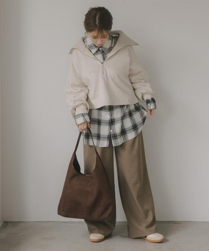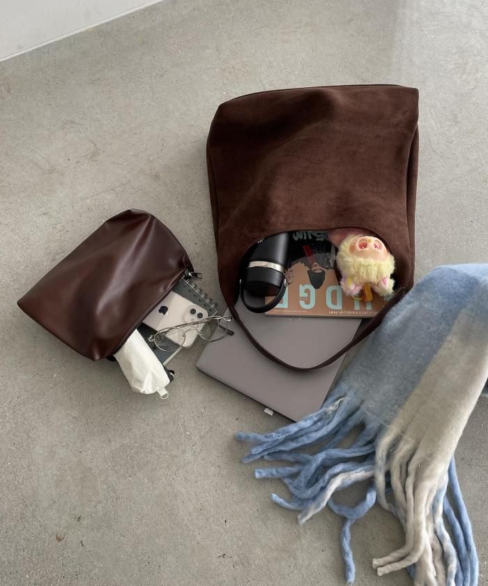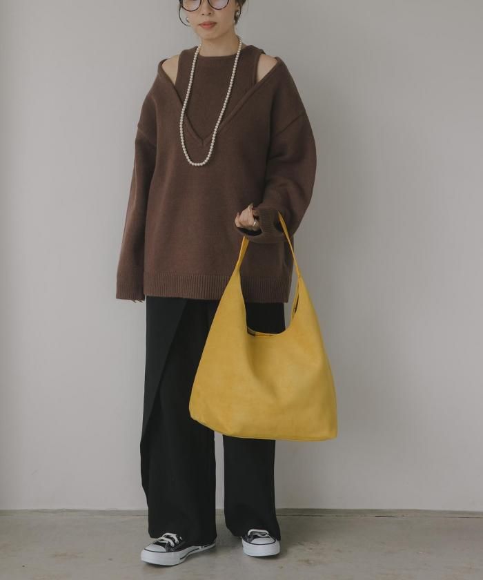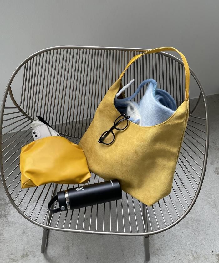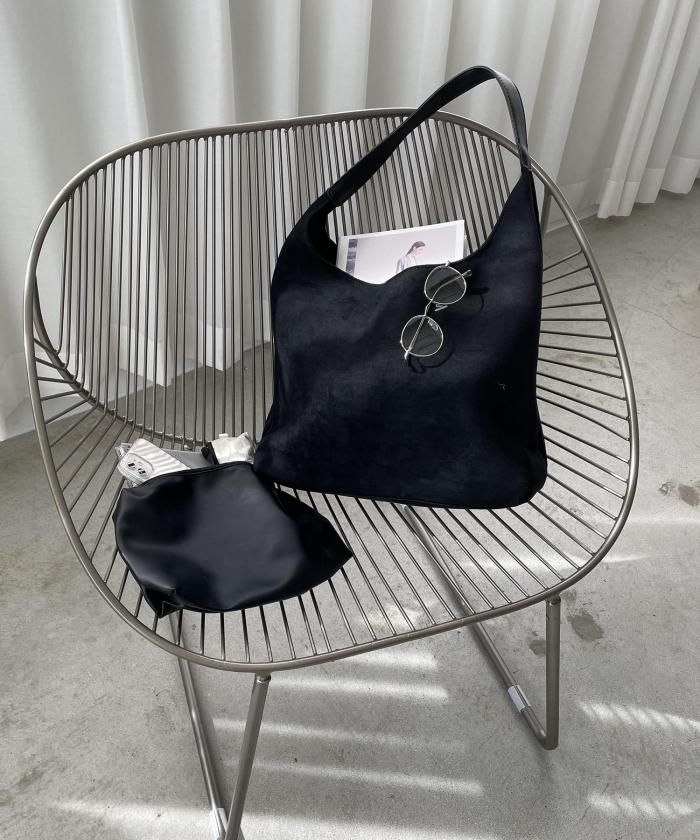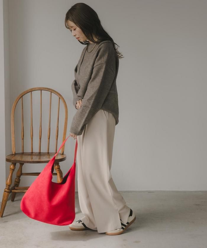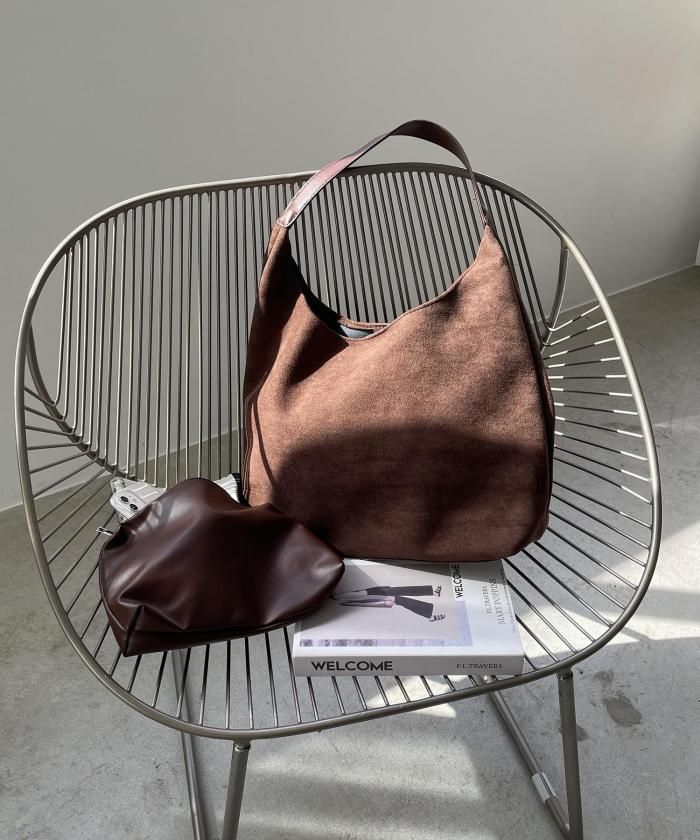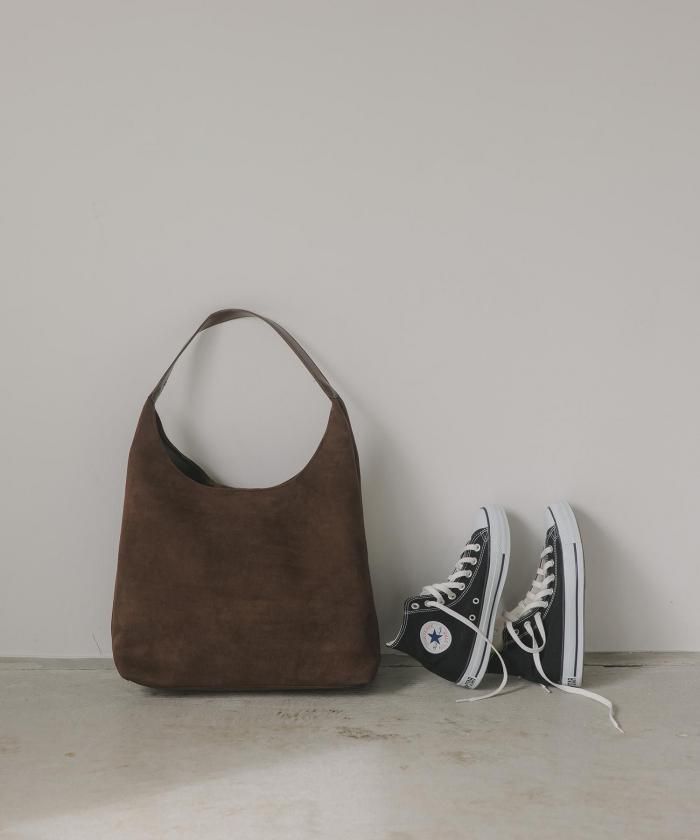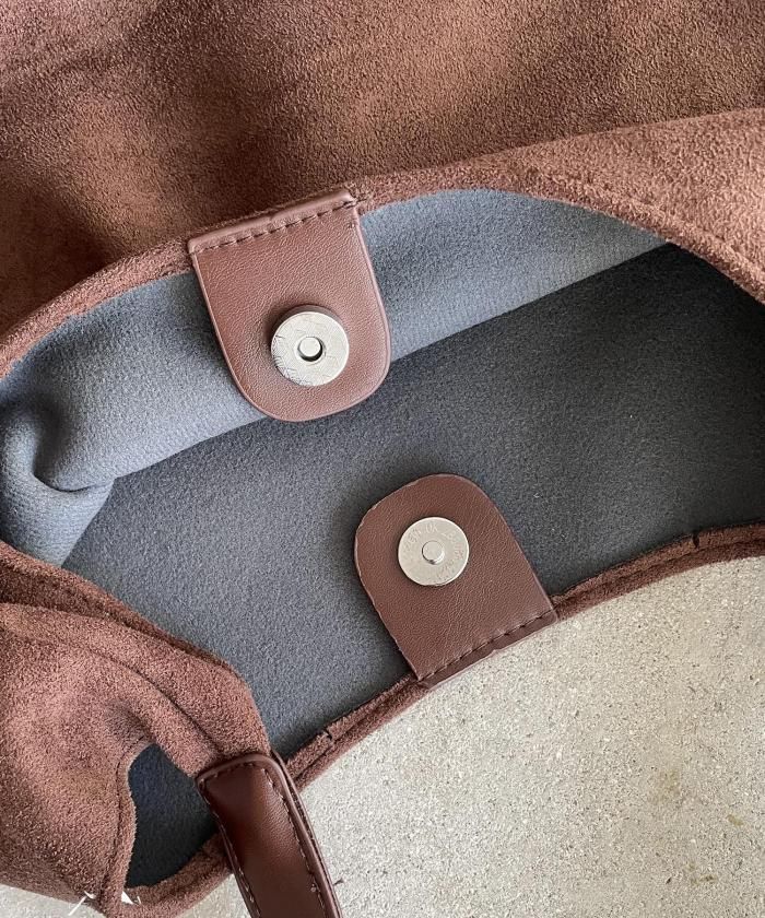 トレンド素材のスエードを使ったシーズンムード高まるショルダーバッグ。A4、PCもしっかり収納できるサイズ感でデイリーに使いたくなるバッグ。耐久性に考慮し、摩擦の多いショルダー部分にはフェイクレザーを使用しています。