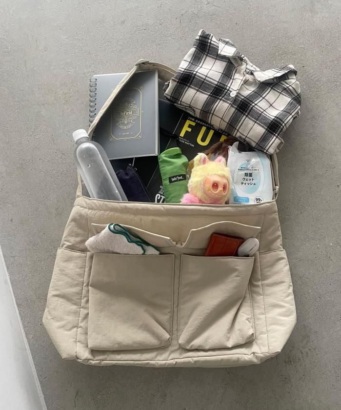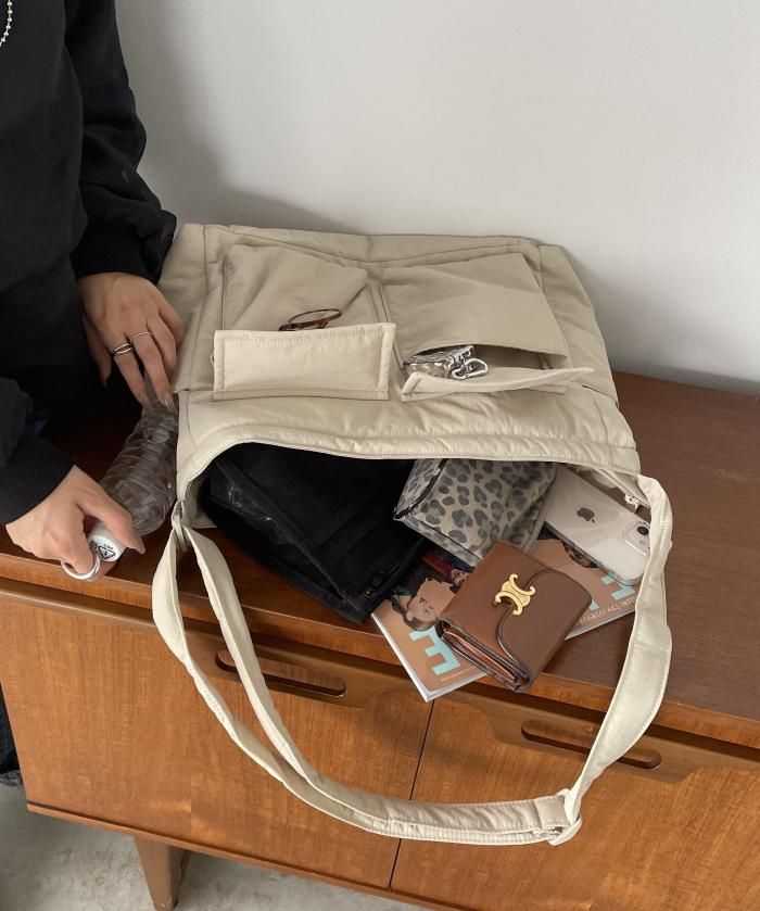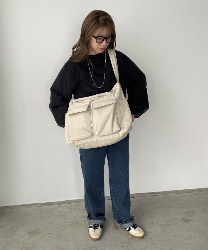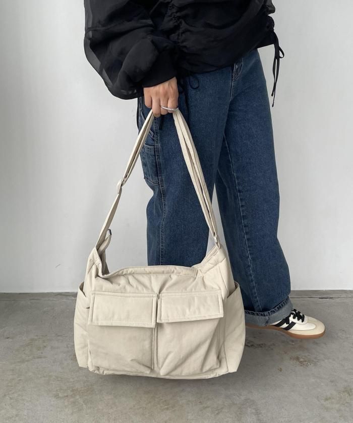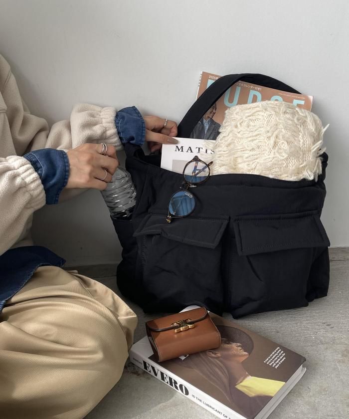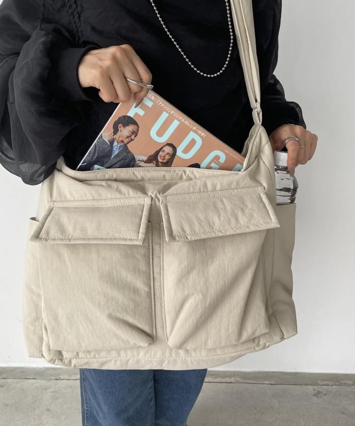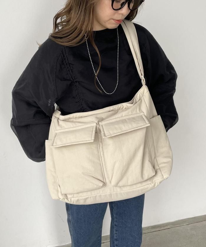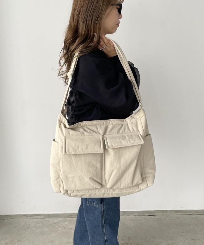 マルチポケット ナイロン ビッグ ショルダーバッグ