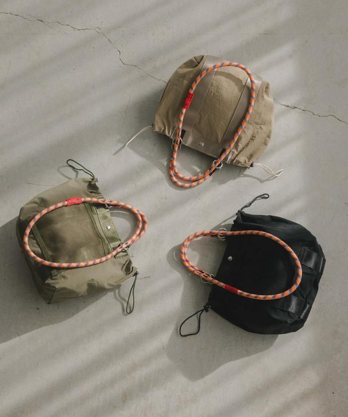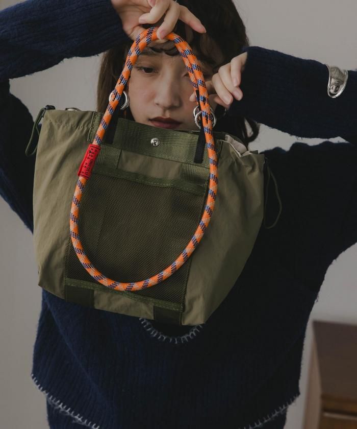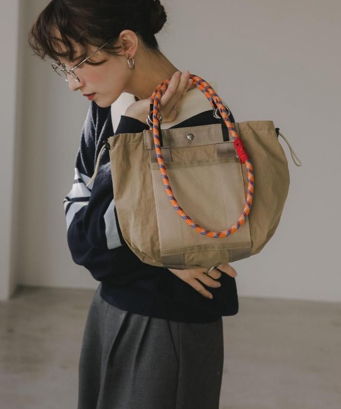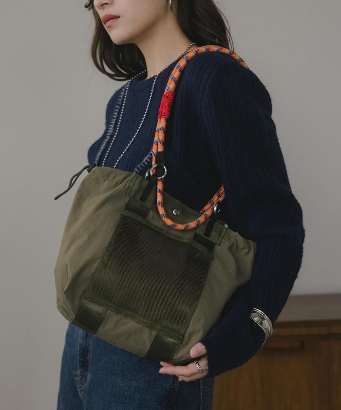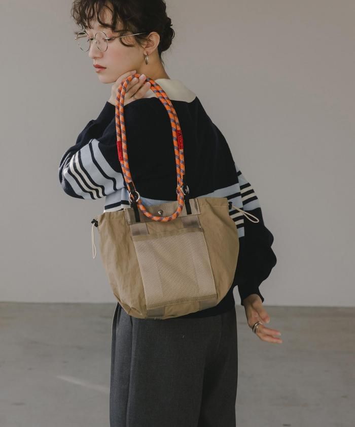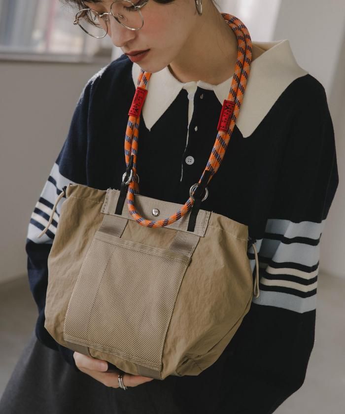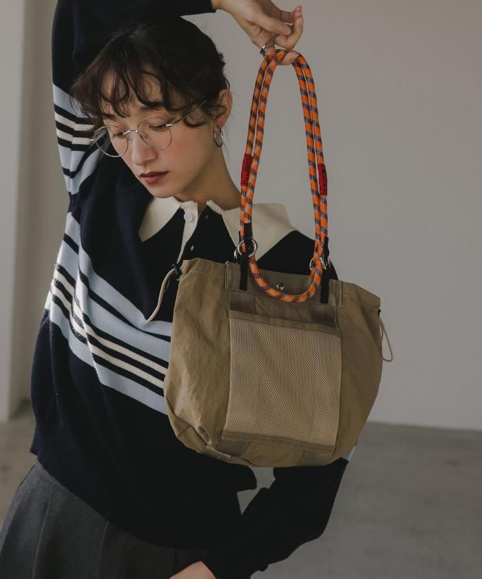 マットなナイロン素材に大人気のコードストラップをハンドルにしたトレンド感のある2WAYバッグ。カジュアルすぎず大人っぽい印象でデイリーに使いたくなるバッグです。素材は耐久性のある光沢感のないナイロン素材。前面のメッシュ素材のアウトポケットが見た目のポイントでありながら、使い勝手も◎ハンドバッグ、ショルダーバッグと2WAYでお使い頂けます。開閉はデザイン性も兼ね備えたコードストラップを使ったドロスト仕様。マグネットもついており、中身も安心です。使い勝手の良いなサイズながら内側2・外側1と合わせて3個のポケットがあるので、整理整頓もばっちり◎軽さと収納力を兼ね備えた、通勤から休日のお出かけまで幅広く使えるアイテムです♪